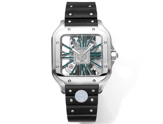 Cartier santos Skeleton 40mm THB Factory 1:1 Best Edition White Case and Black Strap