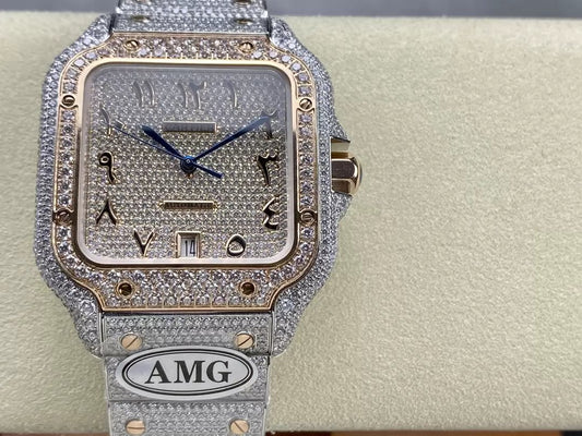Santos De Cartier Diamond Watches Numeric Color Rose Gold Dial 1:1 Best Edition AMG Factory Swarovski Stone
