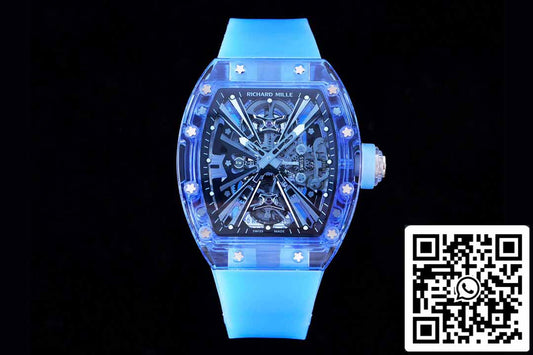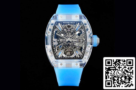 Richard Mille RM12-01 1:1 Best Edition RM Factory Tourbillon Transparent Version Blue Strap