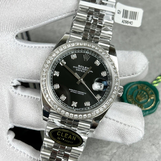 Rolex Datejust 41 Black Diamond Men's Watch 126334-0012 custom moissanite