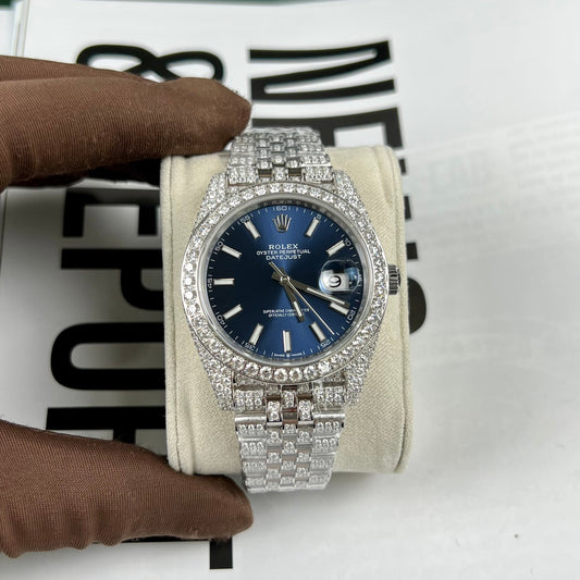 Rolex Datejust 41 Blue Dial Men's Watch 126334-0002 custom moissanite