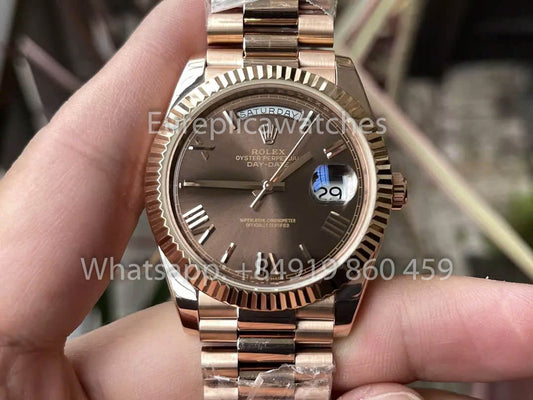 Rolex Everose Gold Day Date 40 228235-003 Chocolate Dial 1:1 Best Clone KF Factory 215 Gram