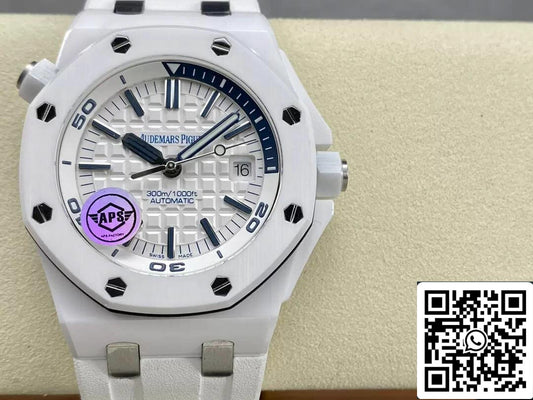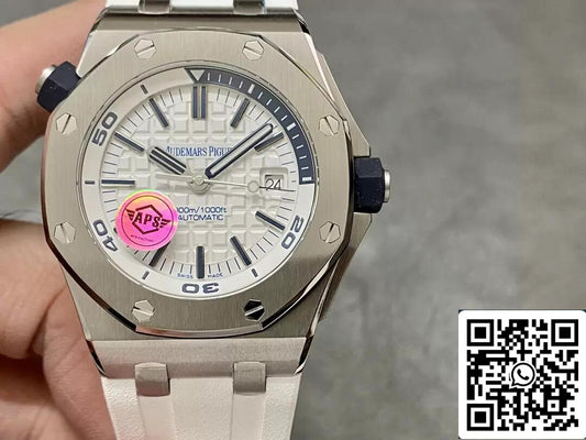 Audemars Piguet Royal Oak 15400 1:1 Best Edition APS Factory Kautschukarmband mit weißem Zifferblatt