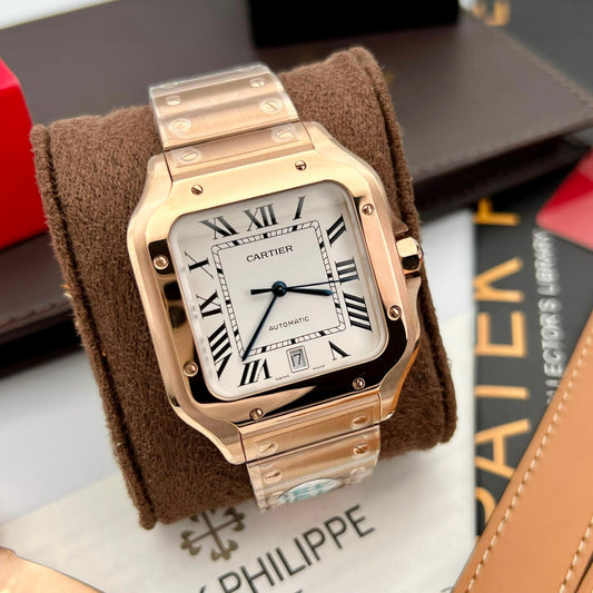 Cartier De Santos Edelstahlgehäuse BV Factory 1:1 Best Edition Weißes Zifferblatt Roségold neueste Version
