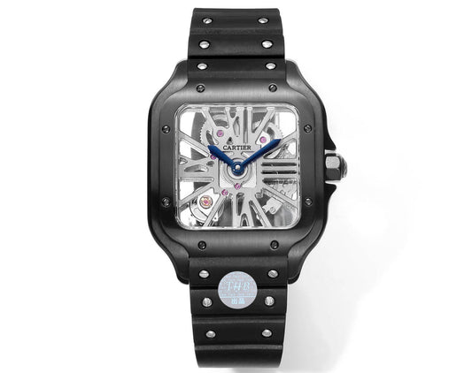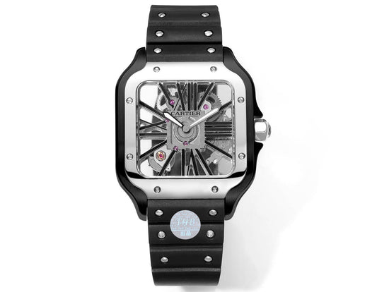 Cartier Santos Skeleton 40 mm THB Factory 1:1 Best Edition weiße Lünette und schwarzes Gehäuse