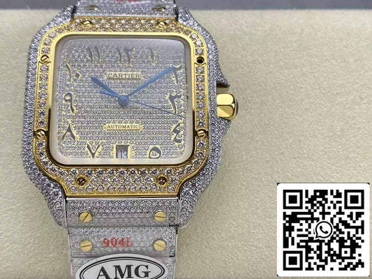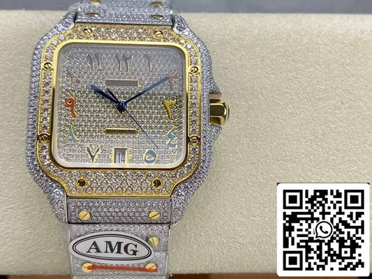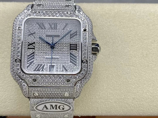 Santos De Cartier Diamant Ziffernblatt Silber 1:1 Best Edition AMG Factory Swarovski Stein