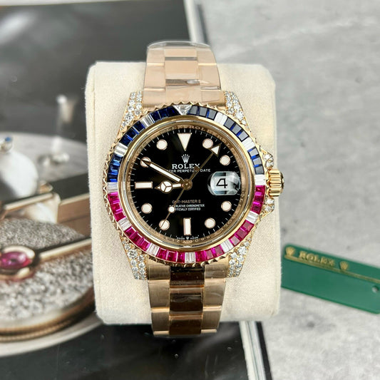 Rolex GMT-Master II 126755 SARU-DIAO Beste 1:1 Edition Rubinstein und Moissanit 18 Karat Gold