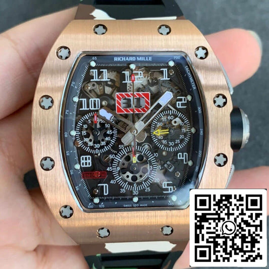 Richard Mille RM11-03 Roségold 1:1 Best Edition KV KU+ Fabrik schwarzes Armband