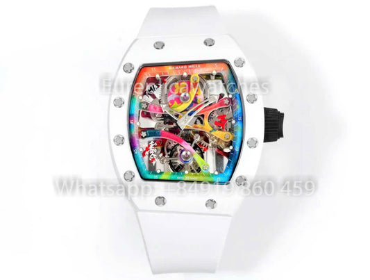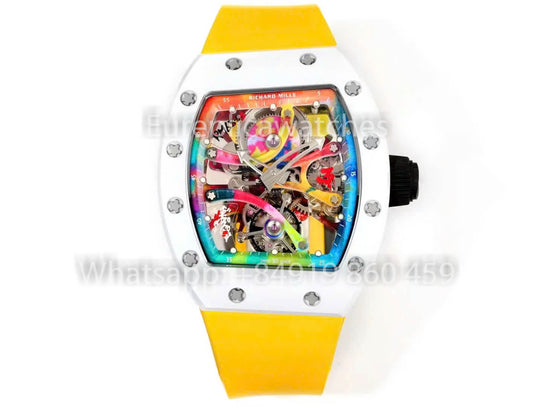 RICHARD MILLE RM 68-01 Tourbillon Cyril Kongo Uhr 1:1 Bester Klon RM Factory Weißes Gehäuse Gummi Gelbes Armband