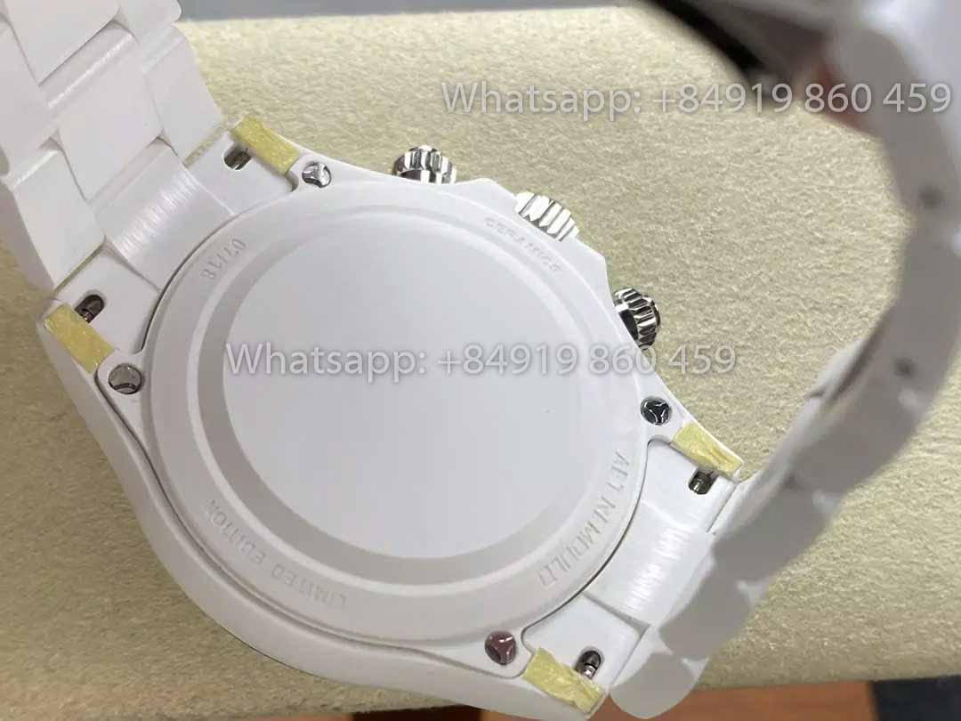 - Das Gehäuse, das Armband und die Cerachrom-Lünette mit Tachymeterskala bestehen aus hochmoderner Super-Nanokeramik und bieten eine überragende Widerstandsfähigkeit gegen Kratzer, Verschleiß und Flecken, während sie gleichzeitig die Haltbarkeit und Wasserbeständigkeit der Uhr deutlich verbessern.