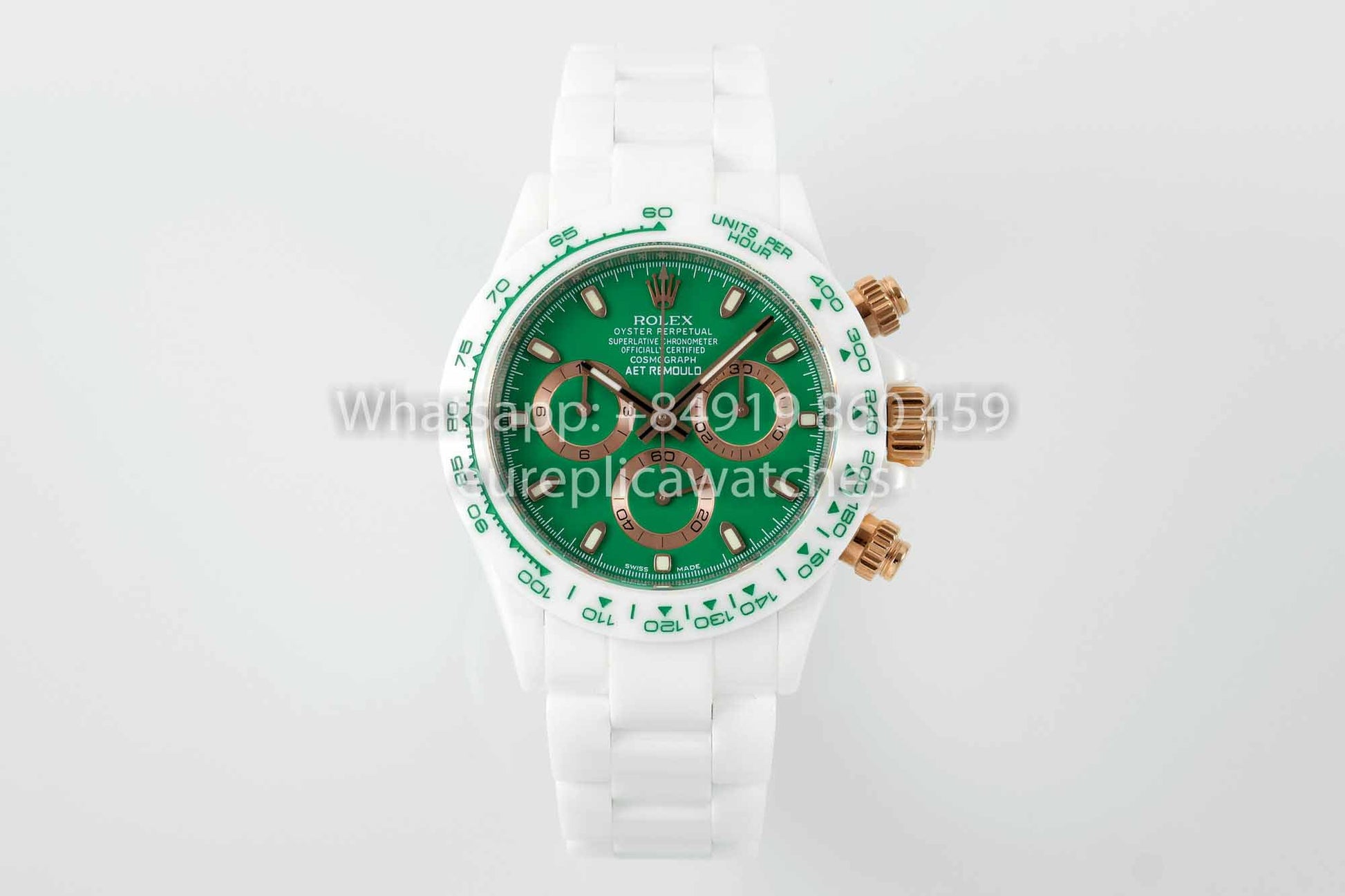 AET REMOULD Custom Rolex Daytona Weißes Keramikgehäuse Grünes Zifferblatt 1:1 Bester Klon N6F Fabrik