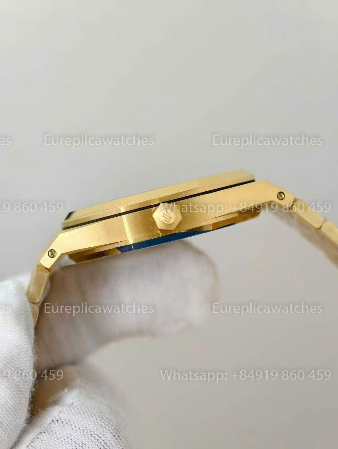Das unverwechselbare achteckige 39-mm-Gehäuse wird aus Edelstahl gefertigt und mit modernster CNC-Technik präzise zugeschnitten und geformt. Anschließend wird es mit einer Kombination aus feinem Bürstschliff und polierten Fasen vollendet, wodurch ein edles Zusammenspiel von Texturen und ein markanter Glanz entstehen. Die Glieder des Armbands durchlaufen mehrere aufwendige Polierprozesse, was ihnen eine geschmeidige, luxuriöse Haptik verleiht. Die enge und flexible Verbindung sorgt für hohen Tragekomfort. Das AP-Logo auf der Schließe ist fein graviert, mit klaren Linien und plastischer Wirkung. Hörner und Armband gehen nahtlos ineinander über und schaffen eine harmonische Gesamtästhetik.