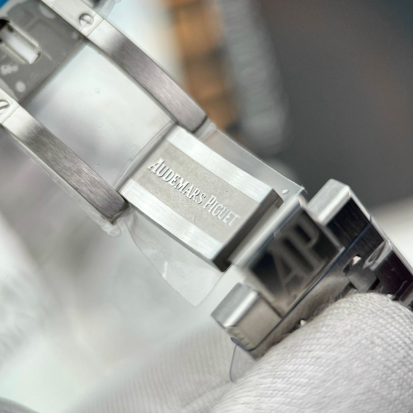 Die Audemars Piguet Royal Oak ist eine der legendärsten Uhren aller Zeiten. Die Uhr wurde erstmals im April 1972 auf der jährlichen Schweizer Uhrenmesse in Basel vorgestellt. Die Show heißt jetzt BaselWorld. Sie feierte Premiere als erste Luxus-Sportuhr aus Stahl und wurde über Nacht zu einer Sensation. Wir liefern die perfektesten Reproduktionen. Nachfolgend finden Sie die Spezifikationen und Detailbilder: