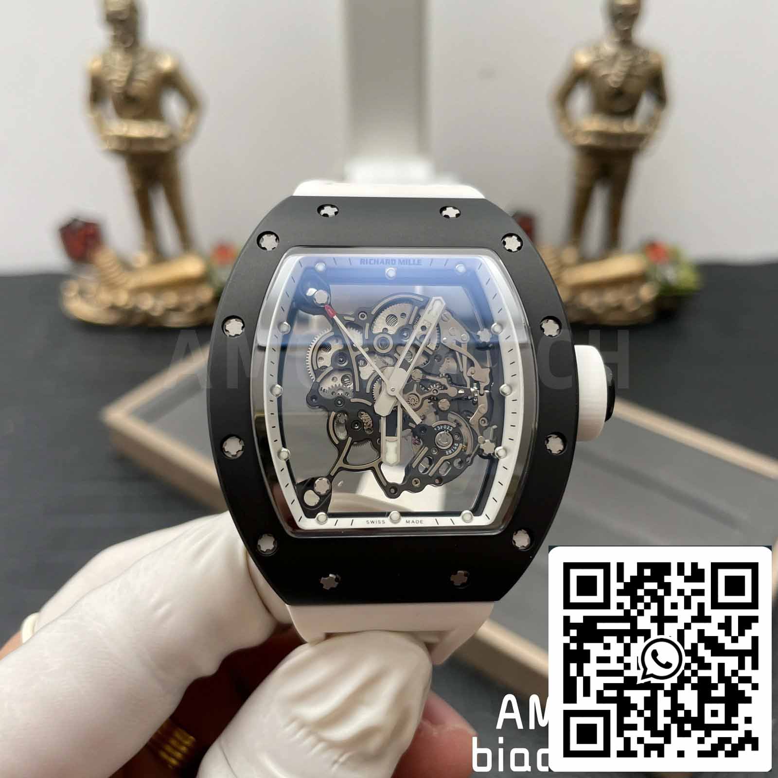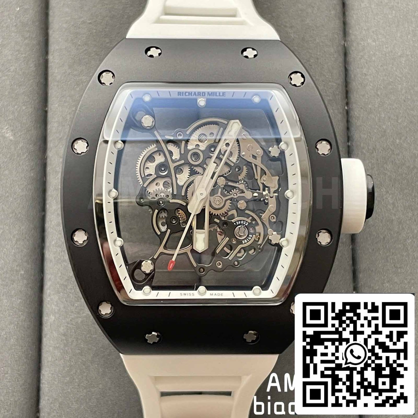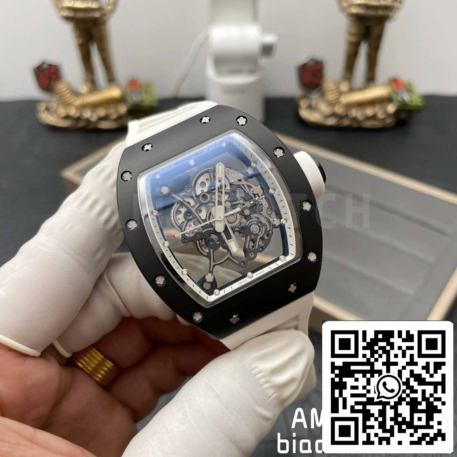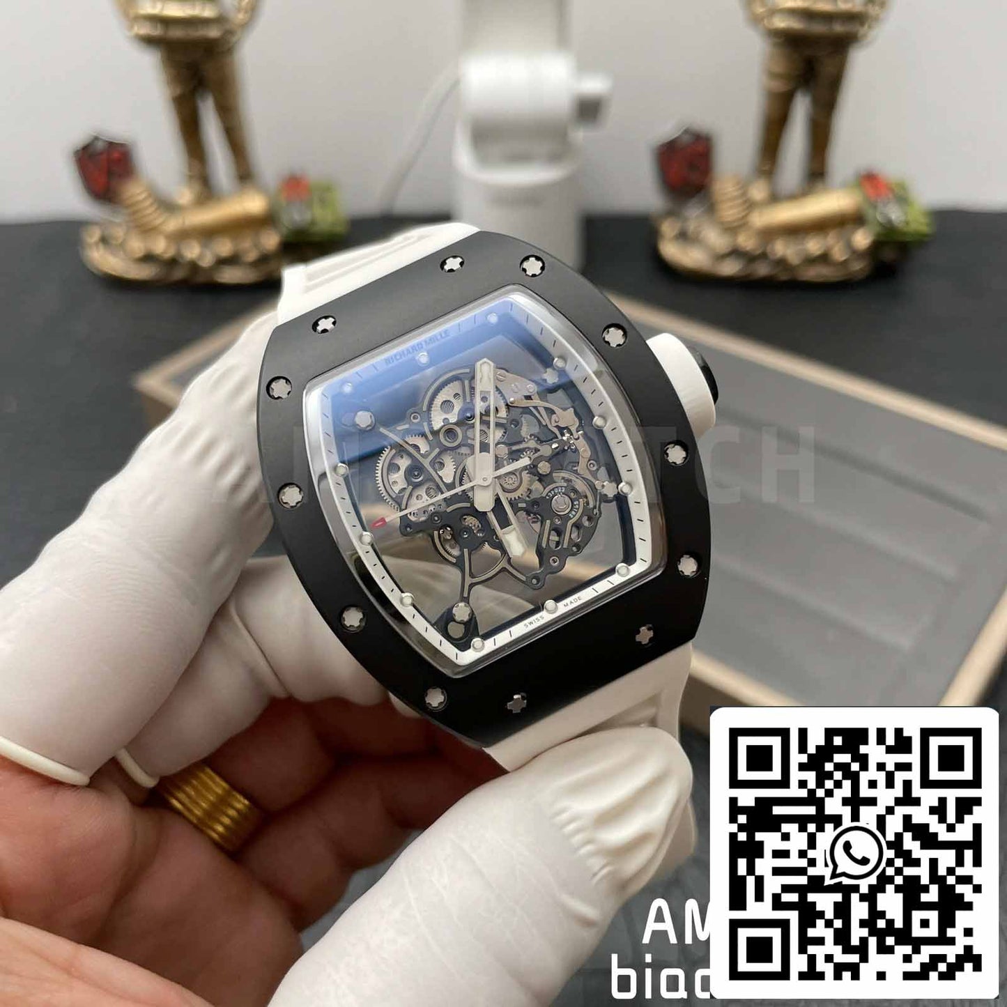 BBR Factory [V3] RICHARD MILLE RM055 RM-055 Schwarzes Keramikgehäuse Weißes Kautschukarmband
