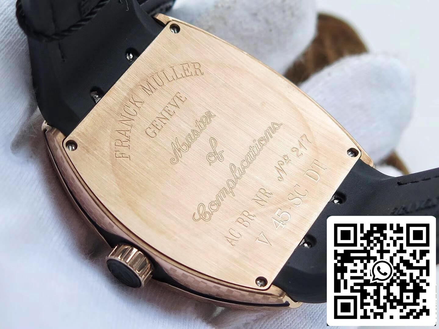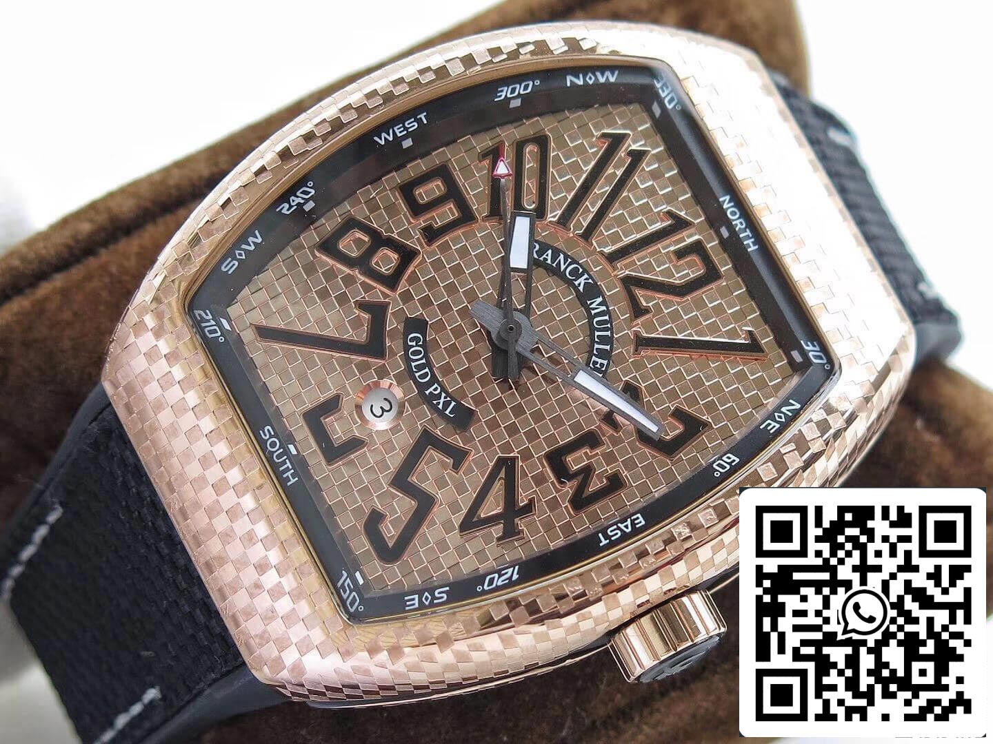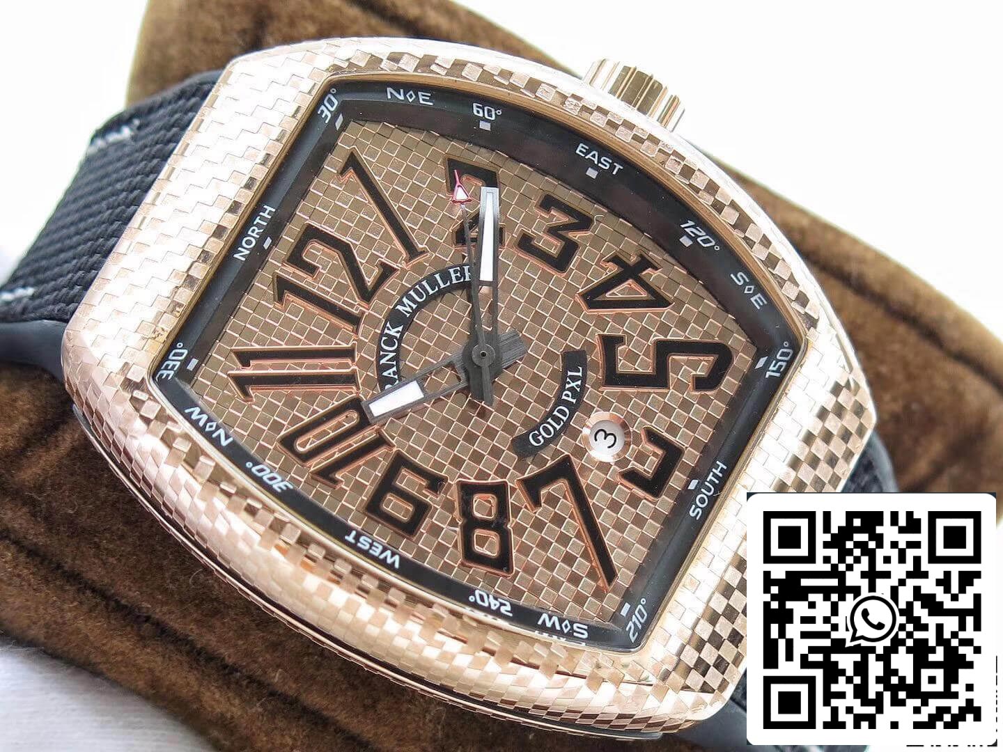 Franck Muller Vanguard V45 1:1 Best Edition Swiss ETA2824-2 18 Karat Roségold schwarzes Nylonarmband