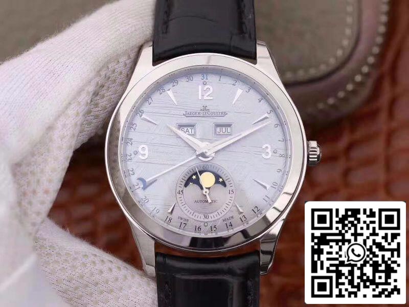 Jaeger-LeCoultre Master Calendar 1558420 OM Factory 1:1 Best Edition Swiss ETA866 Silbernes Zifferblatt Schwarzes Kalbslederarmband