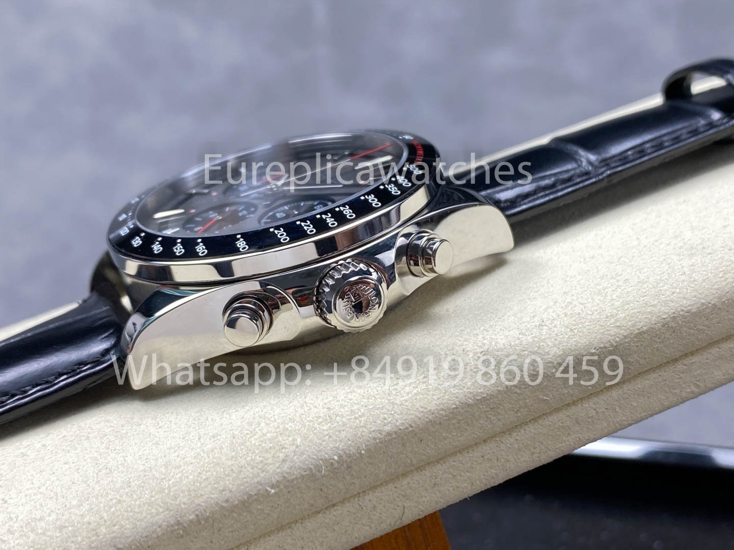 Mit einem auffälligen „Panda Eye“-Zifferblatt mit klassischen Farbkombinationen wie Schwarzweiß, Tiefseeblau, Waldgrün und Champagnergold. Das Chronographen-Zifferblatt wird durch eine elegante schwarze Keramiklünette für einen modernen Touch ergänzt.