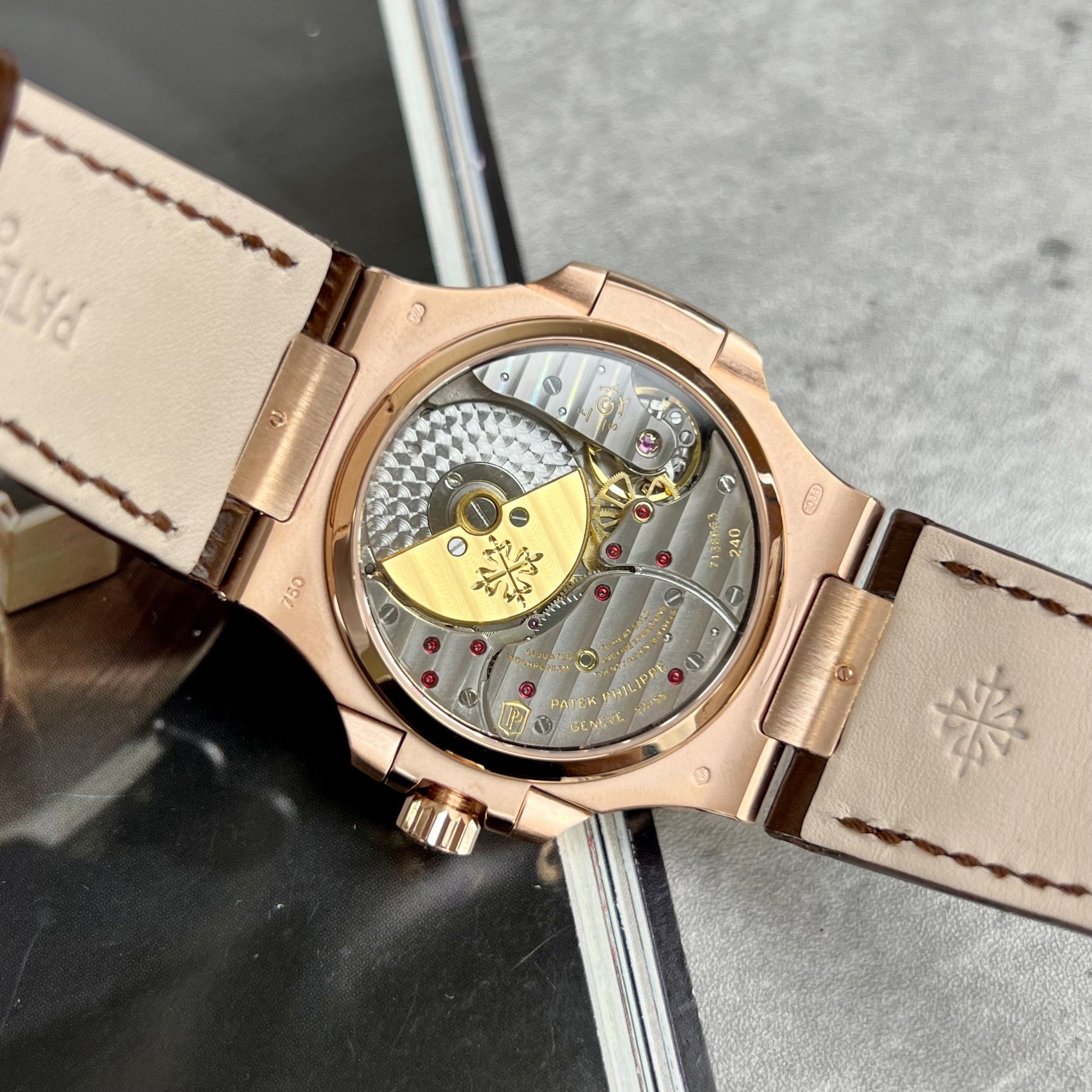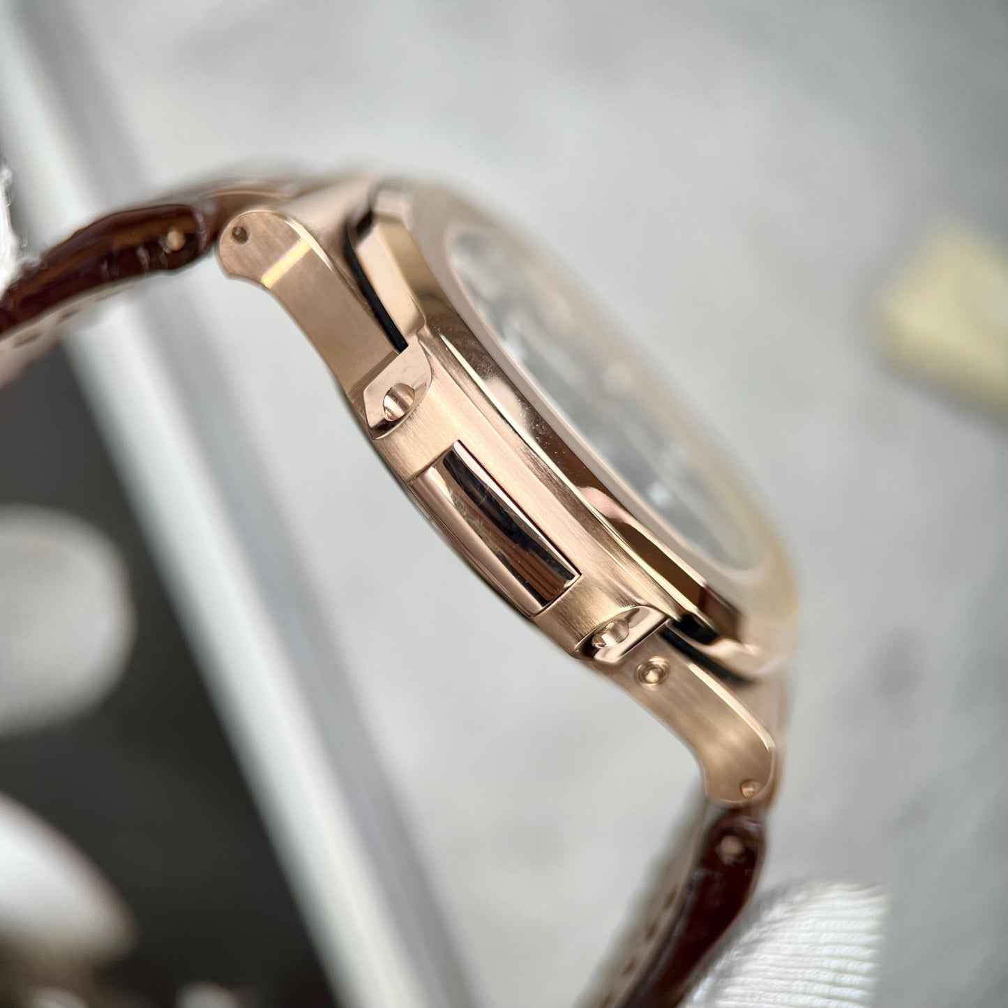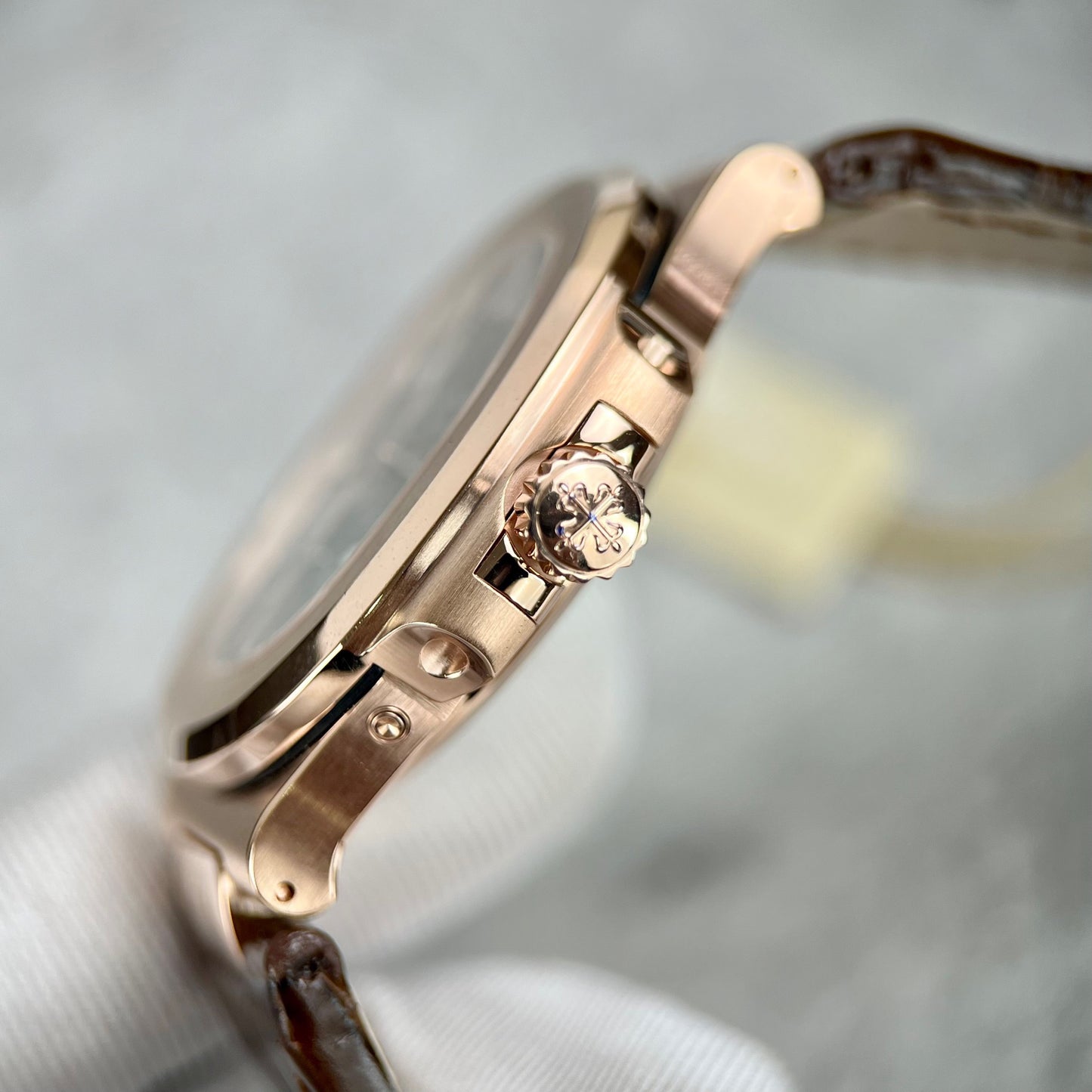 Die Version, die Sie sehen, stammt aus der PPF-Fabrik. Eine Fabrik mit vielen berühmten Produkten von Patek. Mit der Größe und den Parametern sowie dem Zifferblatt als echt. Dieses Produkt ist mit einer zusätzlichen Schicht aus 18-karätigem Roségold gefertigt, was es noch schöner macht. Im Inneren wird es weiterhin einen Stahlkern geben.