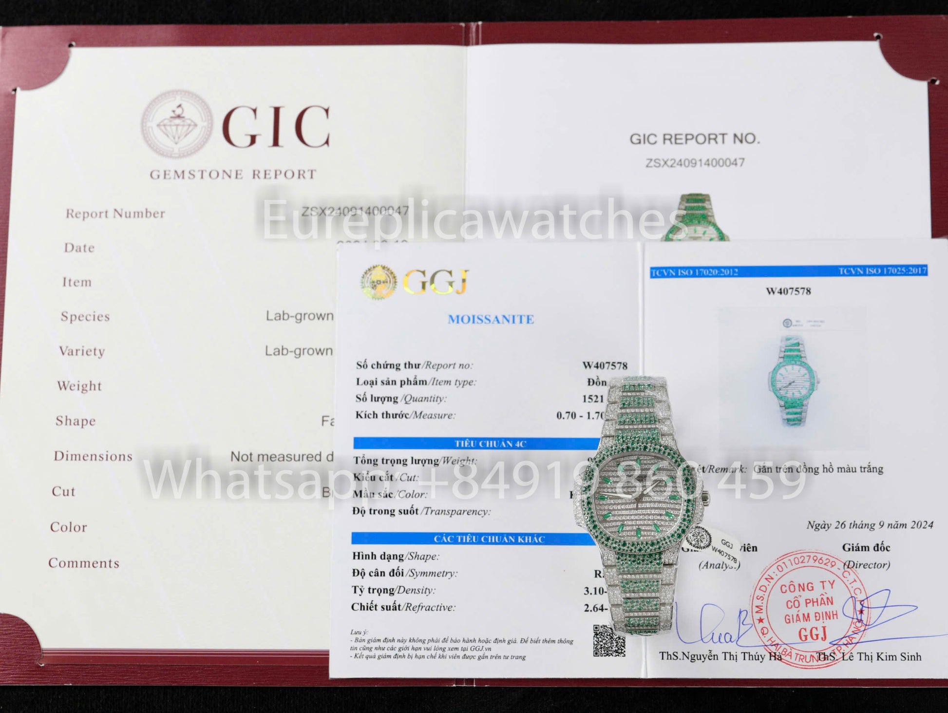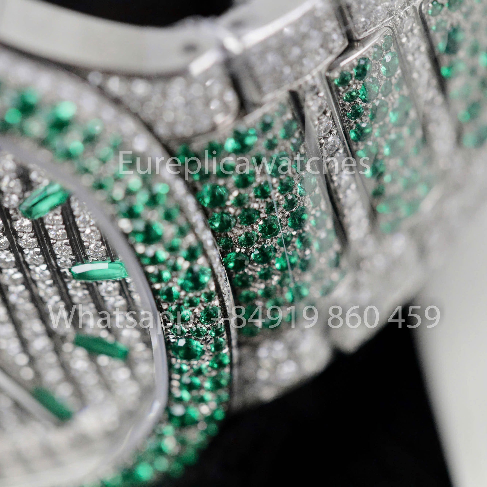 - Steinbesatz: Vollständig mit Moissanit auf Gehäuse, Zifferblatt und Armband