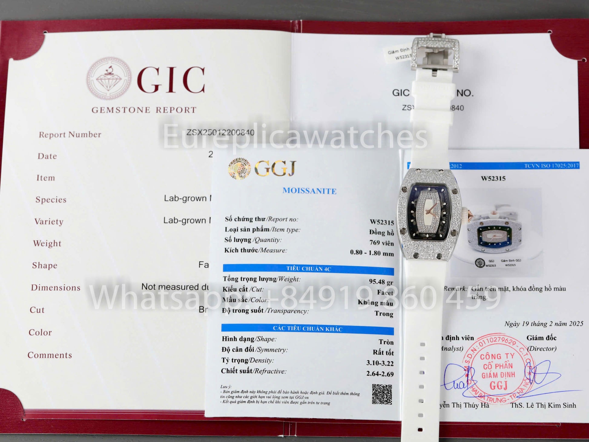 Richard Mille RM 07-01 1:1 Bester Klon RM Fabrik Custom Moissanite Stone White Strap