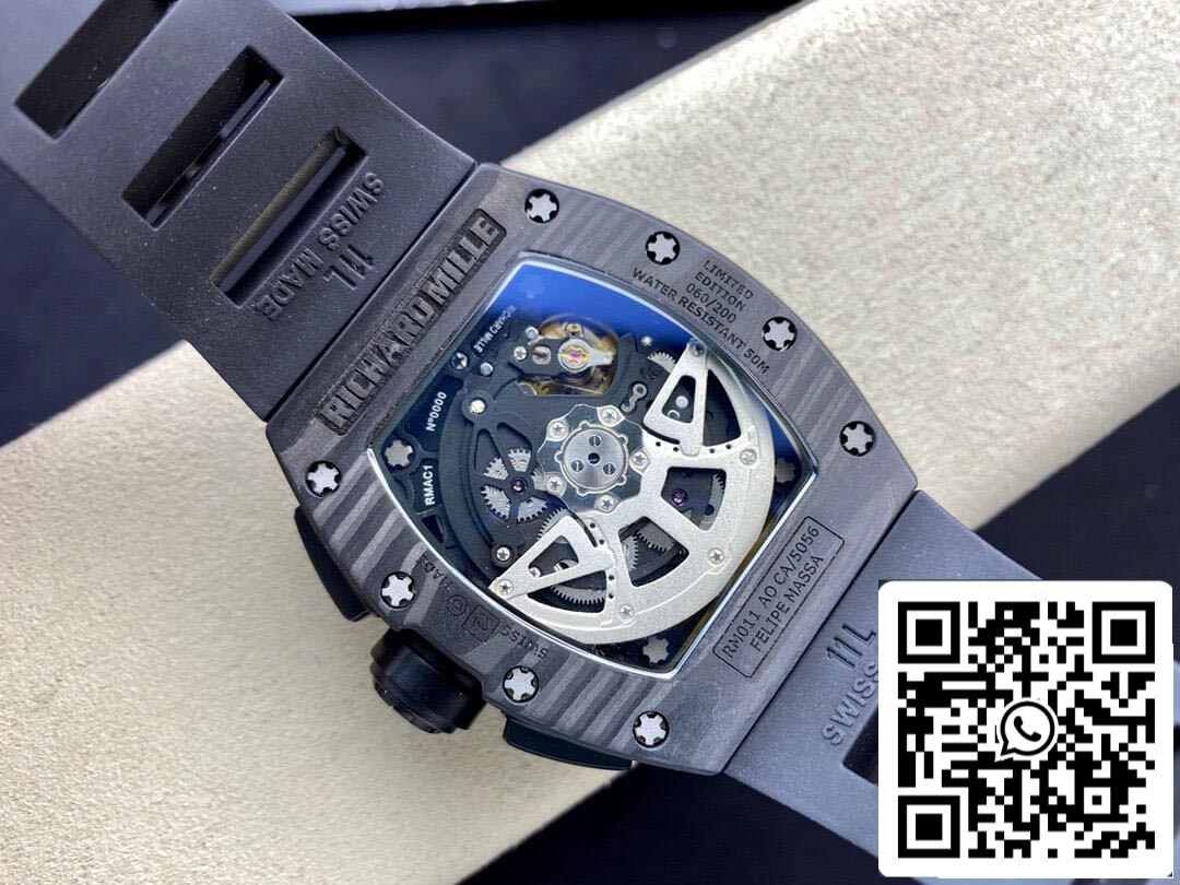 Richard Mille RM011 1:1 Best Edition KV Factory Carbon Fiber Black Rubber Strap