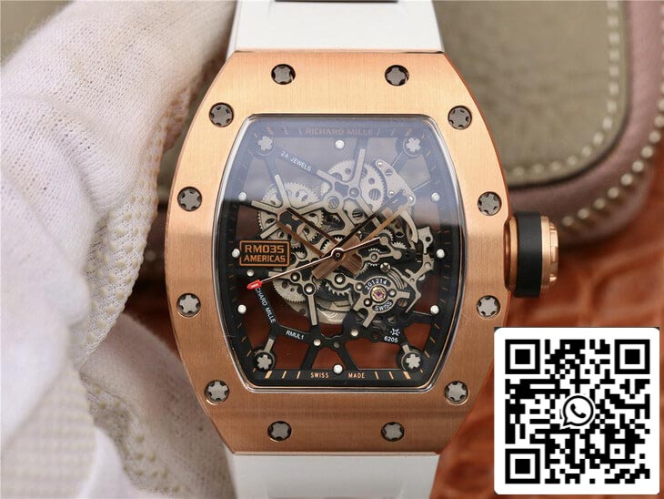 Richard Mille RM035 Americas KV Factory 1:1 Best Edition Roségold mit weißem Armband