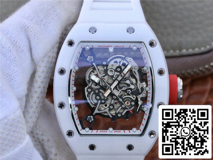 Richard Mille RM055 1:1 Best Edition KV Factory weißes Kautschukarmband