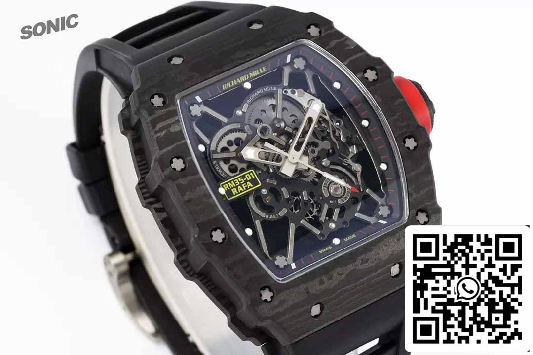 Richard Mille RM35-01 Sonic Factory 1:1 Best Edition Black Carbon NTPT Schwarzes Kautschukarmband