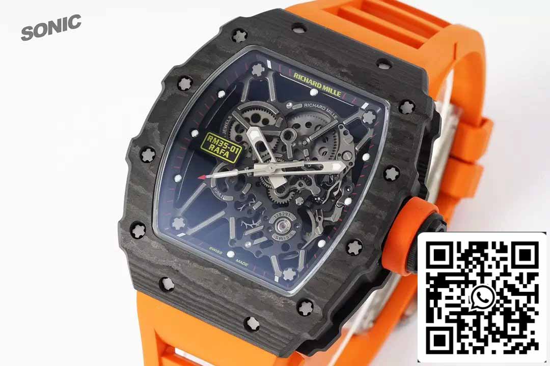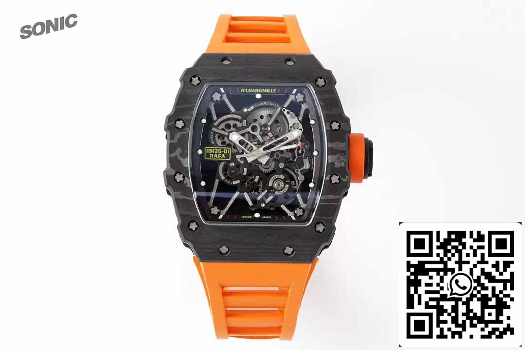 Richard Mille RM35-01 Sonic Factory 1:1 Best Edition Schwarzes Carbon NTPT Orangefarbenes Kautschukarmband