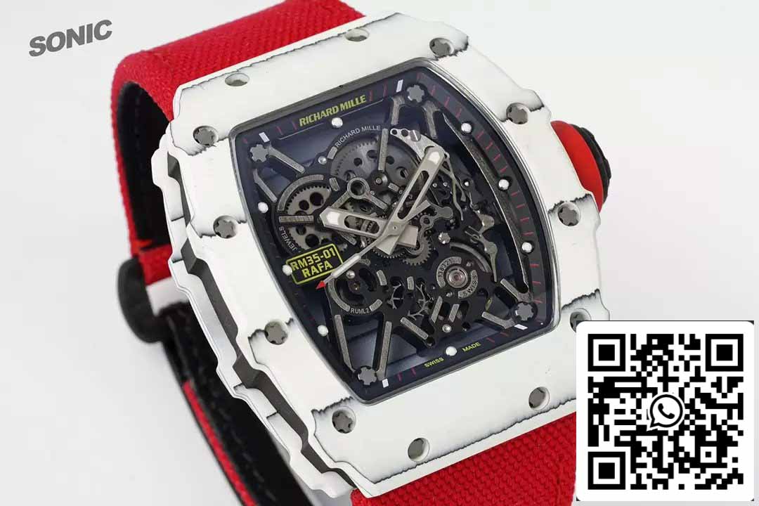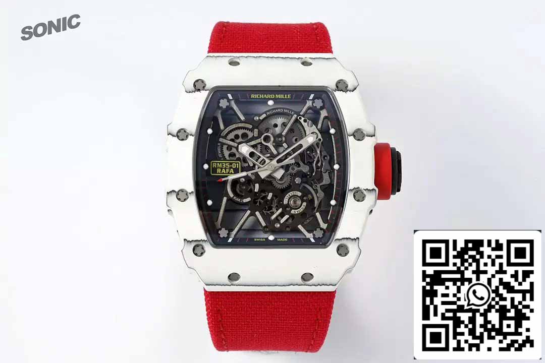 Richard Mille RM35-01 Sonic Factory 1:1 Best Edition Weiß Carbon NTPT Rotes Klettband