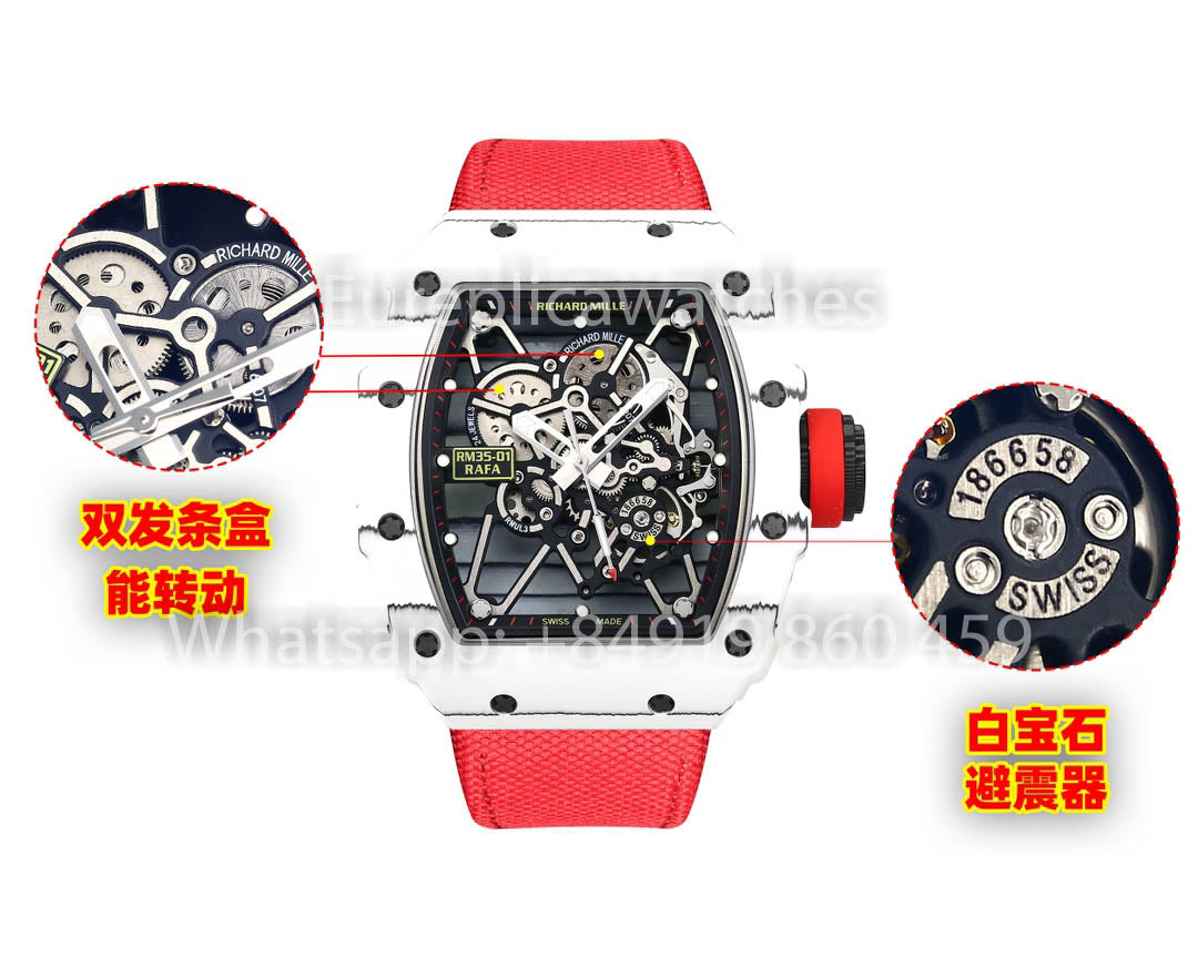 Richard Mille RM35-01 Weißer Carbon 1:1 Bester Klon BBR Factory V2 Rotes Klettband