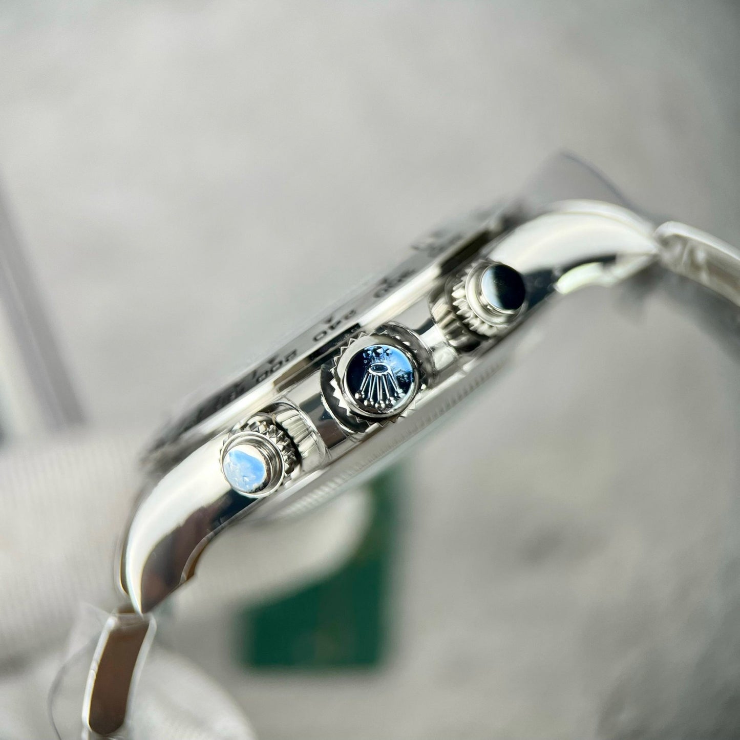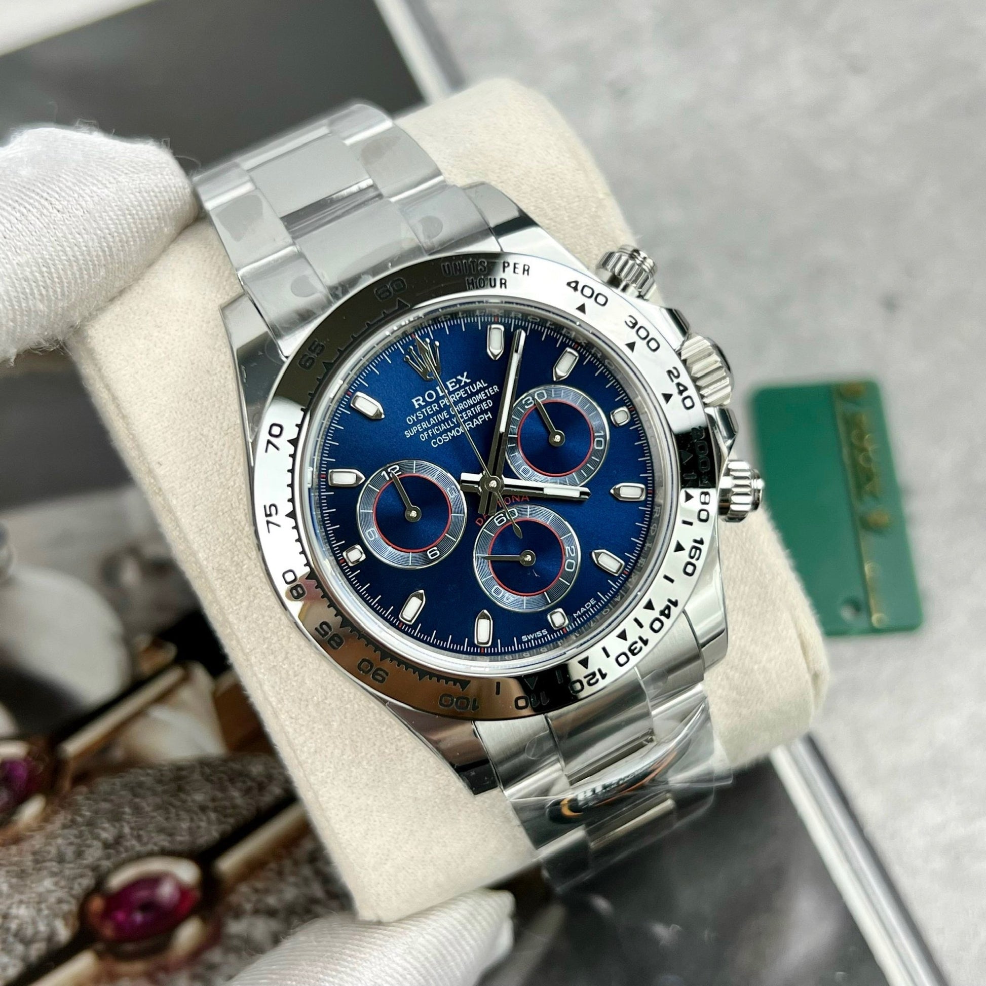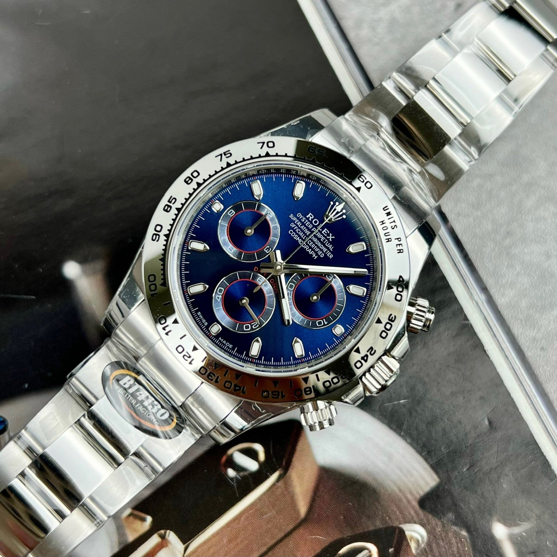 Wenn Sie nach einer perfekten Version von Daytona suchen. Dann ist dies die Version, die Sie suchen. Die Rolex Daytona aus der BT-Fabrik verfügt über die feinsten Außenlackierungen, die heute erhältlich sind. Das Uhrwerk der BT-Serie ist in der Regel leiser, vor allem wenn man versucht, es von Hand aufzuziehen, spürt man es. Außerdem liegt der Uhr eine Rolex-Karte mit einer zur Uhr passenden Seriennummer bei. Ein perfektes Produkt, das Clean in nichts nachsteht.