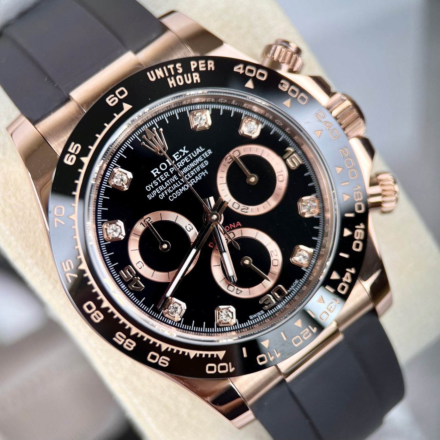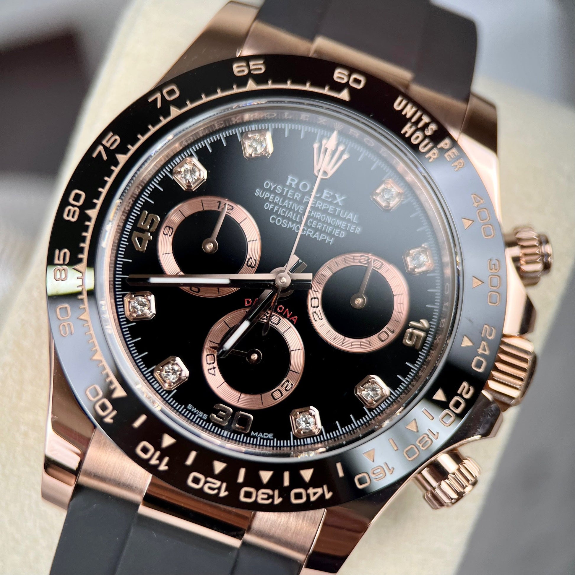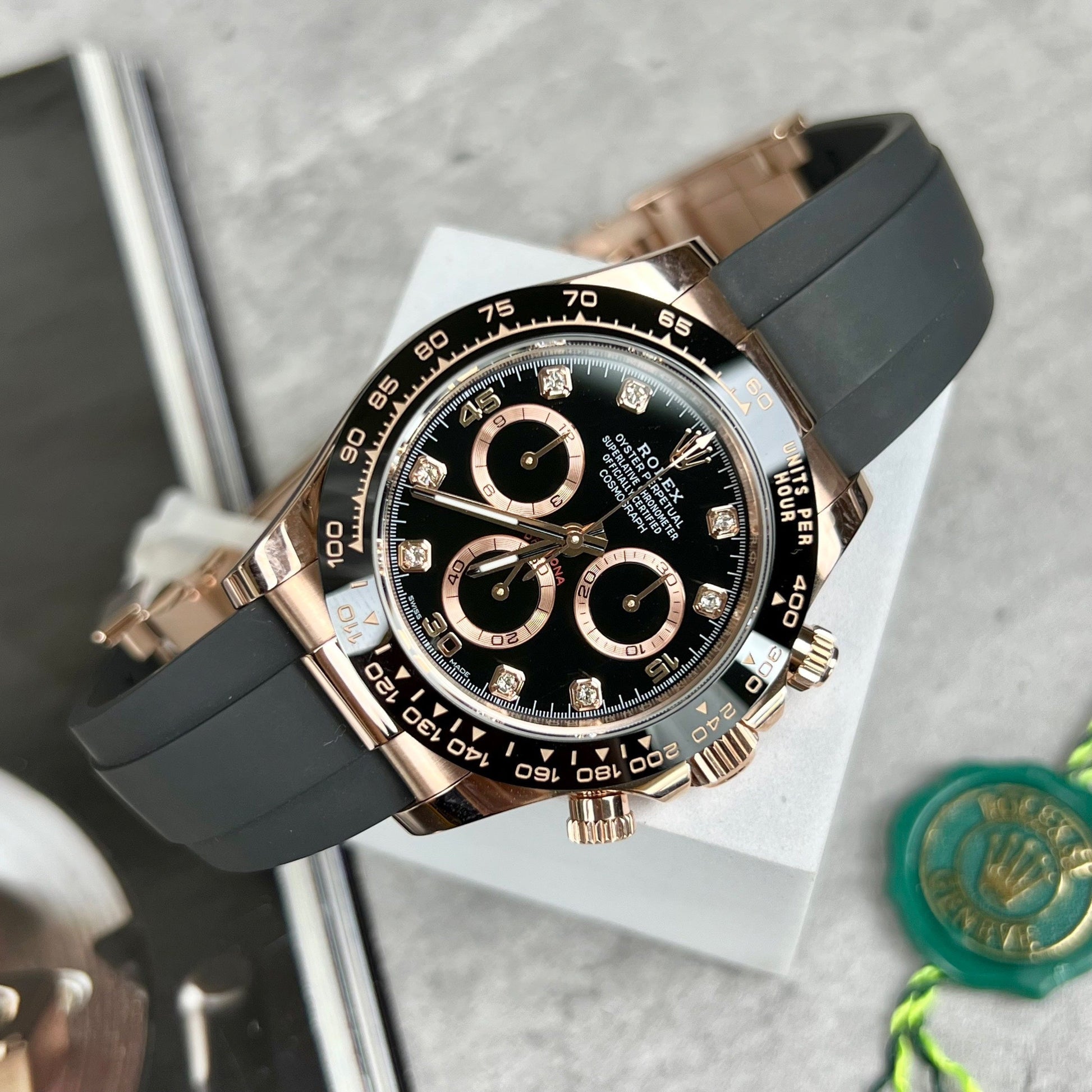 Rolex Daytona ist normalerweise sehr teuer. Sogar Versionen von BT kosten 800 Dollar. Dies ist eine perfektere Version, wenn es um 18 Karat Roségold geht.