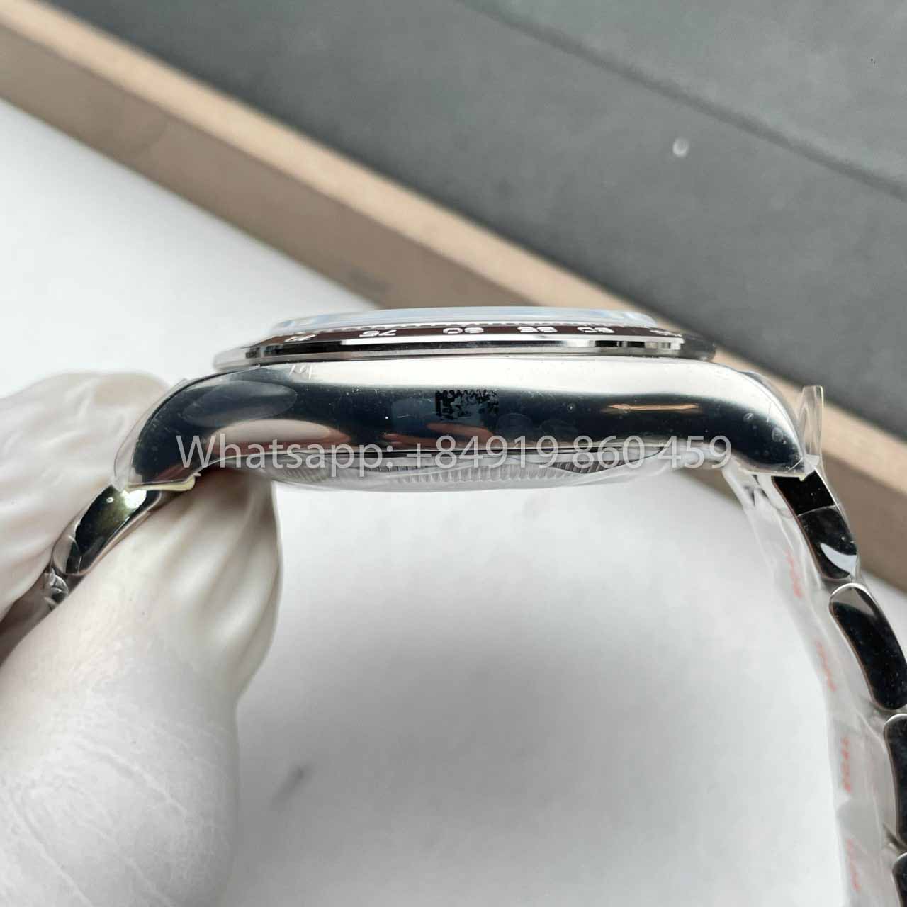 Da es sich bei der Ice Blue Daytona um ein spezielles PT950-Modell handelt, ist nicht nur die Gravur einzigartig, sondern auch der Verschluss auf der Innenseite ist der einzige, der ein mattes Finish verwendet. PS: Alle auf dem Markt verkauften Verschlüsse sind poliert.