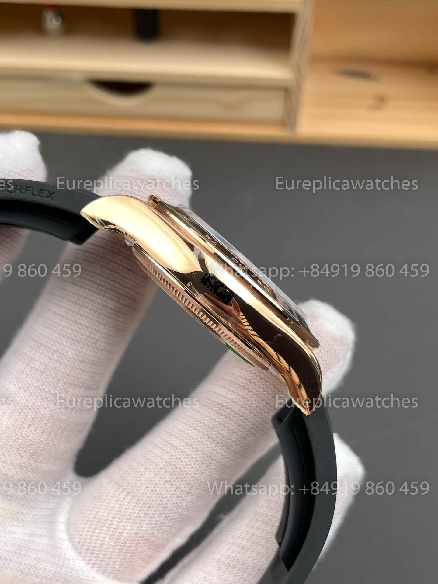 Gehäusematerial: 18 Karat roségoldplattierter 904L Edelstahl (identischer Farbton und Textur wie echtes Rolex Everose Gold)