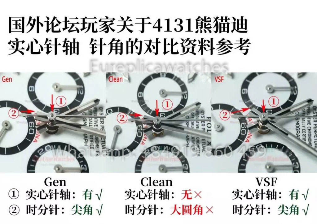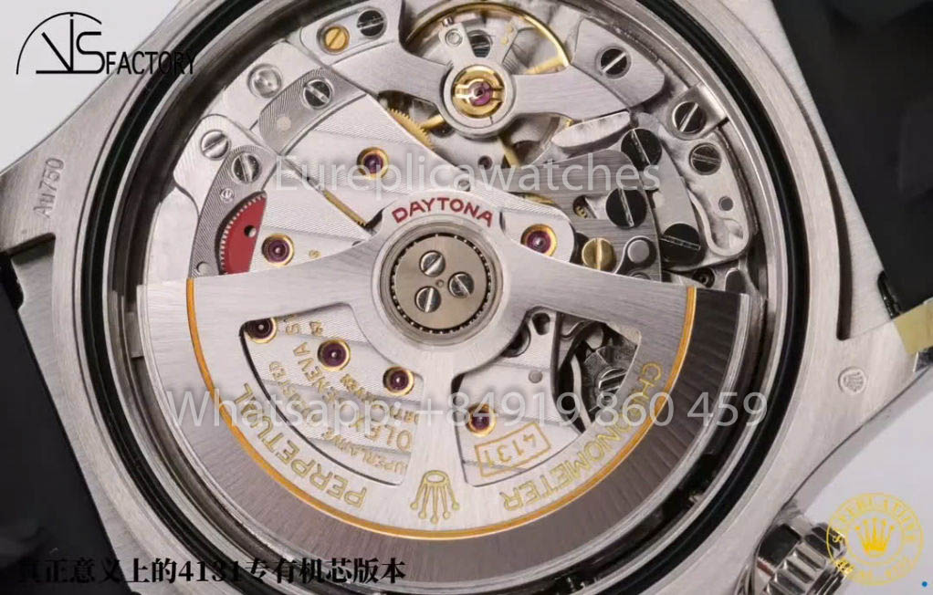 Die VS 4131 Daytona ist ein hochpräziser Chronograph mit einem zementgrauen Zifferblatt mit schwarzen Hilfszifferblättern, einem Gehäuse aus 904L-Edelstahl und einer Tachymeterlünette aus schwarzer Keramik . Dieses Modell ist mit dem exklusiven Uhrwerk 4131 von VS Factory ausgestattet, das auf der Grundlage der ursprünglichen Uhrwerkstruktur von Rolex entwickelt wurde.