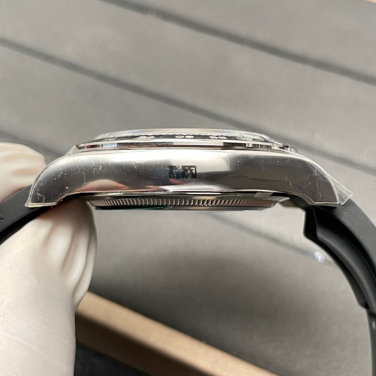 Auch andere Teile wie die Nagelzeichen und die Leuchtkraft sind gut verarbeitet. PS: Es wurde bereits erwähnt, dass nach dem Original 4131 der Rohrkopf des Zeigers in eine zylindrische Form geändert wurde, aber wir haben bei den vier von Clean gelieferten Originalteilen mehrere Probleme festgestellt, wie z. B. Abweichungen in der Rundung der Nagelzeichen und die Verwendung alter konischer Rohrköpfe an den Zeigern. Rolex räumt also möglicherweise immer noch den Lagerbestand des 4130 ab.