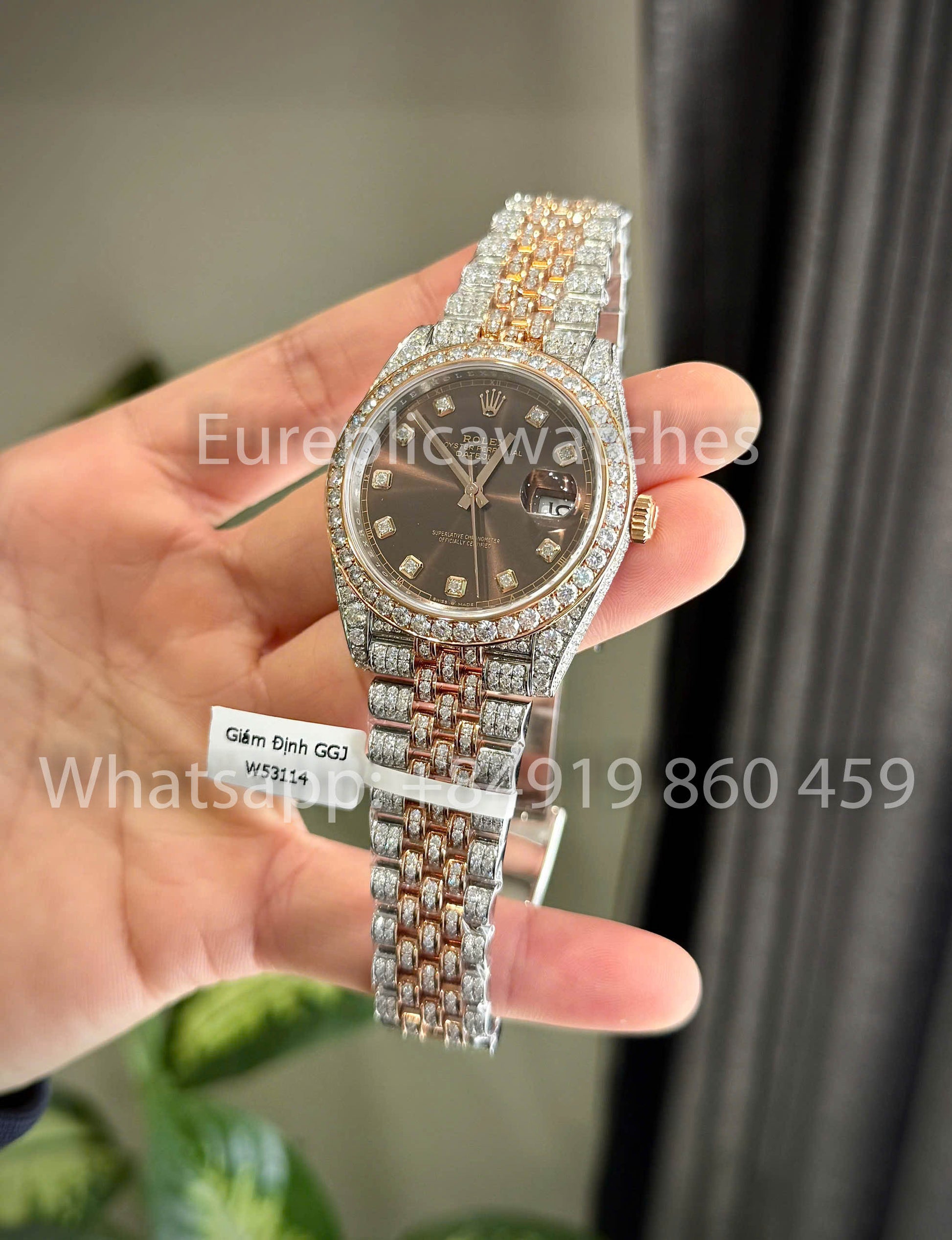 Rolex Datejust 41 mm, individuell gestaltetes Zifferblatt mit Moissanit, 1:1 Best Clone, schokoladenbraune Diamanten
