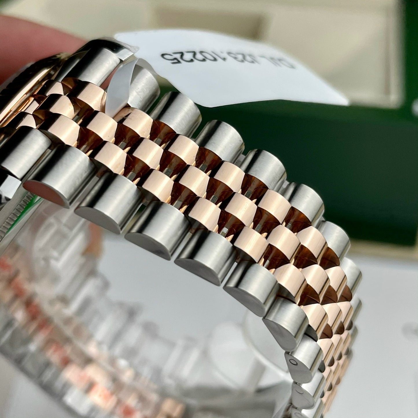 Material: 904L-Stahl, Gehäuse und Band mit 18-karätigem Roségold beschichtet