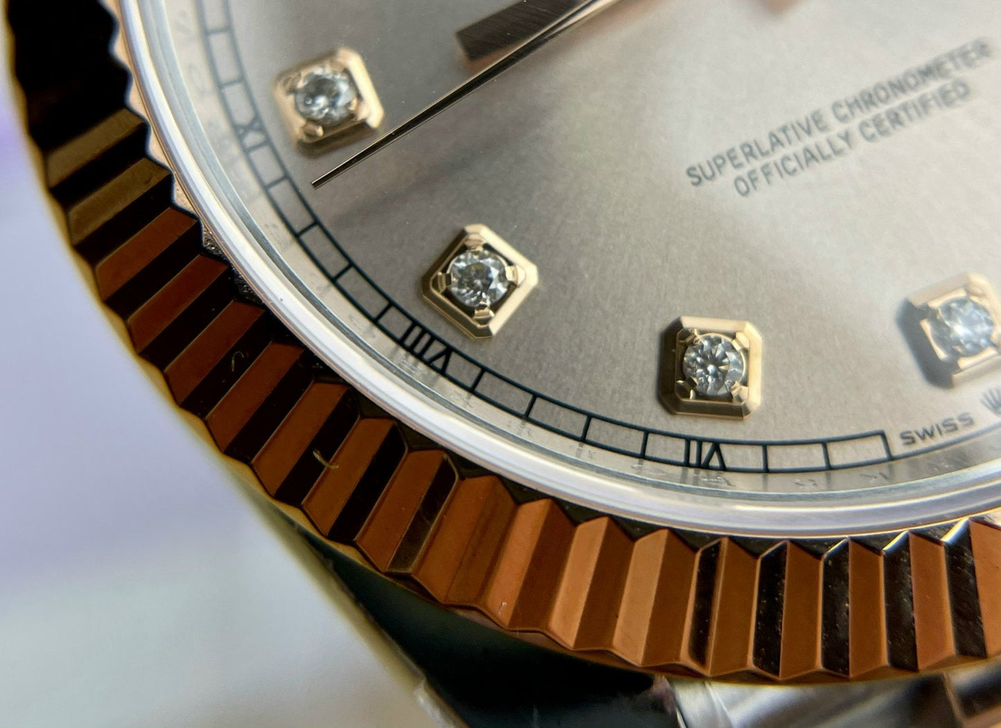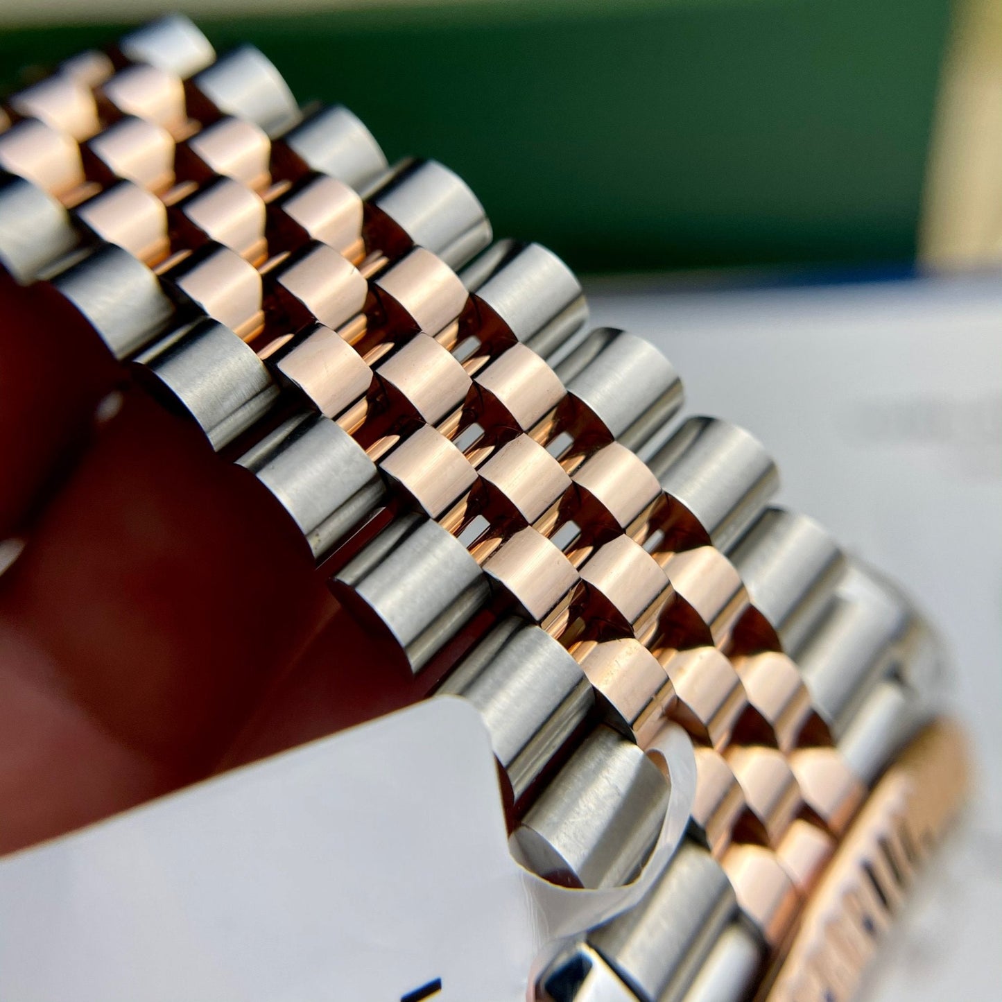 Die von Ihnen betrachtete Version wird von der Clean Factory hergestellt. Mit einem 3235-Uhrwerk, das Rolex perfekt nachbildet. Diese Uhr ist mit einer äußeren Goldschicht gefertigt, die sie schöner macht, einer dicken Goldschicht, die verhindert, dass sie mit der Zeit verblasst.
