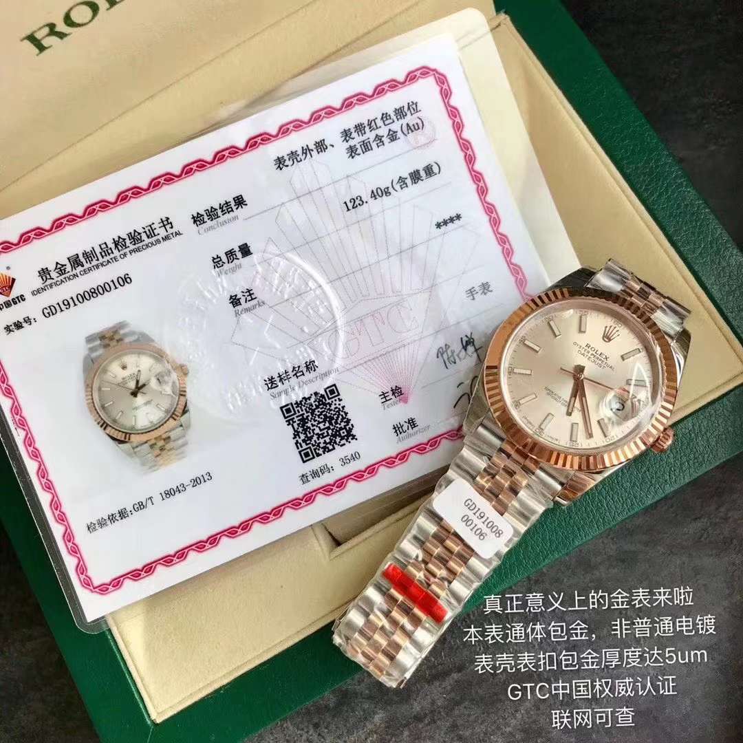 Das Glück reicher Menschen ist so einfach und unprätentiös. Die echte Golduhr ist da. Der gesamte Körper ist mit 18 Karat Gold überzogen, die Dicke beträgt 5 µm und das maßgebliche Zertifizierungszertifikat von GTC China kann online überprüft werden! Der Uhrendurchmesser beträgt 41 mm, ausgestattet mit einem Schweizer Originalwerk eta-2824 und lebenslanger Garantie! Die Datejust II ist ein Mitglied der Rolex Oyster-Familie. Sie übernimmt die Merkmale der Oyster Perpetual Datejust-Uhr, die 1945 auf den Markt kam. Die Datejust II feierte ihr Debüt im Jahr 2009 und ist die erste Wahl für alle, die sich für Klassiker einsetzen und Innovationen anstreben. Diese neu interpretierte klassische Uhr hat ihren ganz eigenen Charme und ist noch edler. Die Datejust-Uhr ist ein Klassiker der modernen Uhren. Es ist außerdem die weltweit erste wasserdichte Automatikuhr mit einem Kalenderanzeigefenster auf dem Zifferblatt. Betrachten. Dies war zu dieser Zeit eine beispiellose technologische Innovation, der die Datejust ihren Namen verdankte. Der dreieckige, geriffelte Außenring gilt seit jeher als ikonisches Design der Datejust-Uhren und macht Rolex Datejust-Uhren zu den Uhren mit dem höchsten Wiedererkennungswert. Als die Oyster-Uhr im Jahr 1926 auf den Markt kam, hatte das dreieckige Vertiefungsmuster einen bestimmten Zweck: den Außenring an einer festen Position am Gehäuse festzuhalten, um die präzise Wasserdichtigkeit der Uhr sicherzustellen. Das Oyster-Gehäuse spielt eine wichtige Rolle in der Geschichte von Rolex. Das Uhrengehäuse verdankt seinen Namen der Tatsache, dass es wie eine Austernschale verschlossen werden kann. Mit zwei wichtigen Erfindungen, der verschraubten Bodenabdeckung und der verschraubten wasserdichten Aufzugskrone, kann die Uhr auch im Wasser perfekt funktionieren. Die verschraubte Aufzugskrone und der verschraubte Bodendeckel des Gehäuses sind das Herzstück der Oyster-Uhr. Der 1953 von Rolex erfundene Doppelverriegelungsmechanismus stellt sicher, dass die verschraubte Krone vollständig wasserdicht ist, indem er auf zwei Dichtungsbereiche im Rohr und in der Krone beruht. Alle Oyster-Modelle sind mit dieser Vorrichtung ausgestattet und bis zu einer Tiefe von 100 Metern wasserdicht. Das Oyster-Armband ist die Verkörperung perfekter Form, Funktion, Ästhetik und Technologie, exquisit und charmant. Dieses Ende der 1930er Jahre eingeführte Metallarmband besteht aus drei Reihen breiter, flacher Glieder. Es ist extrem stark und war schon immer das am häufigsten verwendete Armband der Oyster-Serie. Die Datejust II ist von der Pionieruhr Datejust II inspiriert und verfügt über ein Datumsfenster bei 3 Uhr. Das Datum ändert sich in den frühen Morgenstunden augenblicklich in nur wenigen Millisekunden. Das 1953 von Rolex erfundene konvexe Vergrößerungskalenderfenster vergrößert das Datum um das 2,5-fache und erleichtert so das Ablesen.