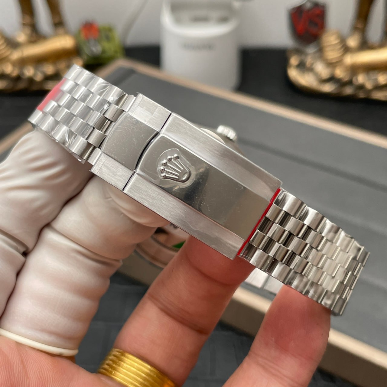 Dies ist die beste Rolex Datejust, die derzeit von VS Factory hergestellt wird. Das Zifferblatt ist klar mit reflektierten Lichtstrahlen, die Schrift ist klar und die Leuchtkraft ist superhell. 904L-Stahl ist auch ein leichterer Stahl als andere Fabrikstahl. Kratzfestes Saphirglas. Das neueste Modell der Uhr verwendet das neueste Datejust-Boxschloss.