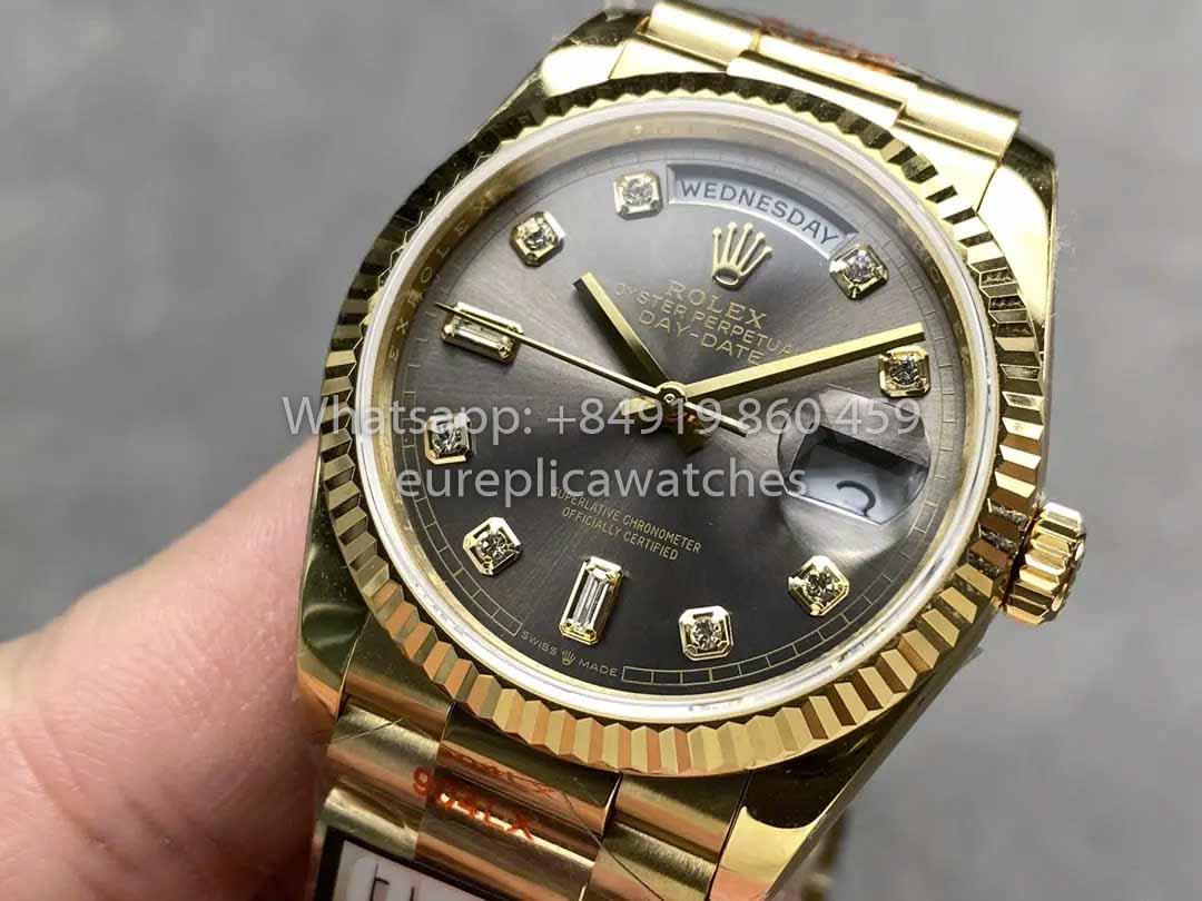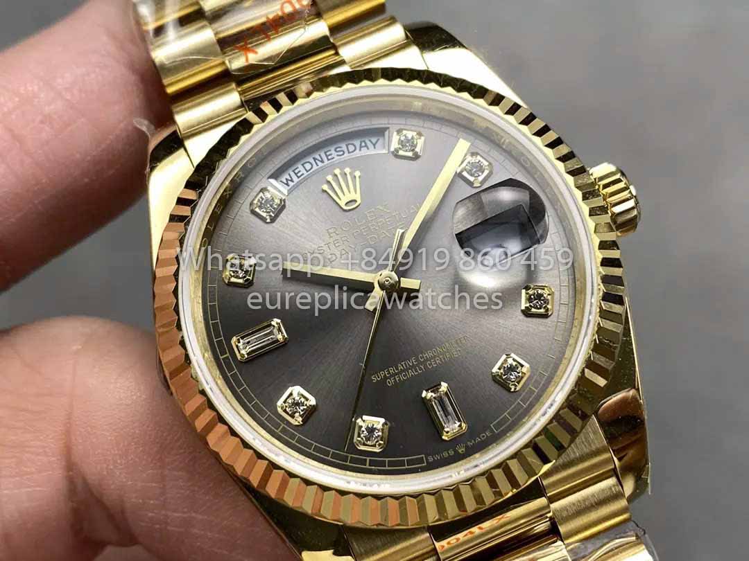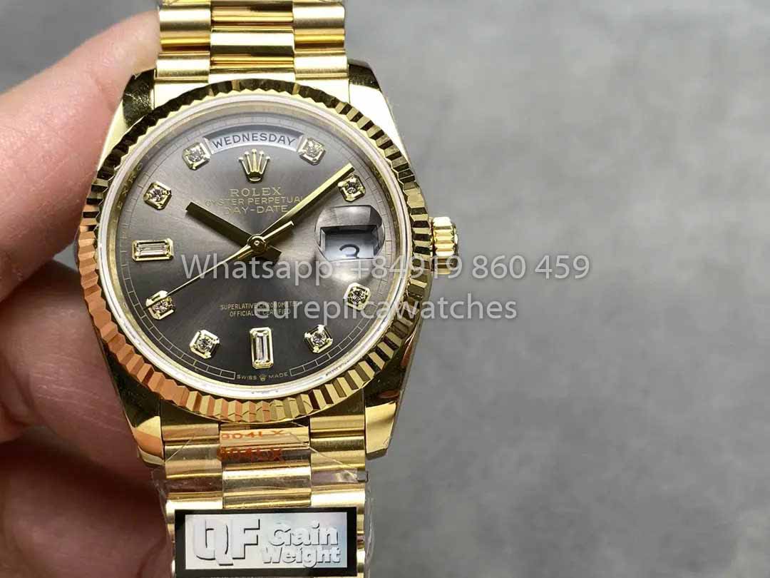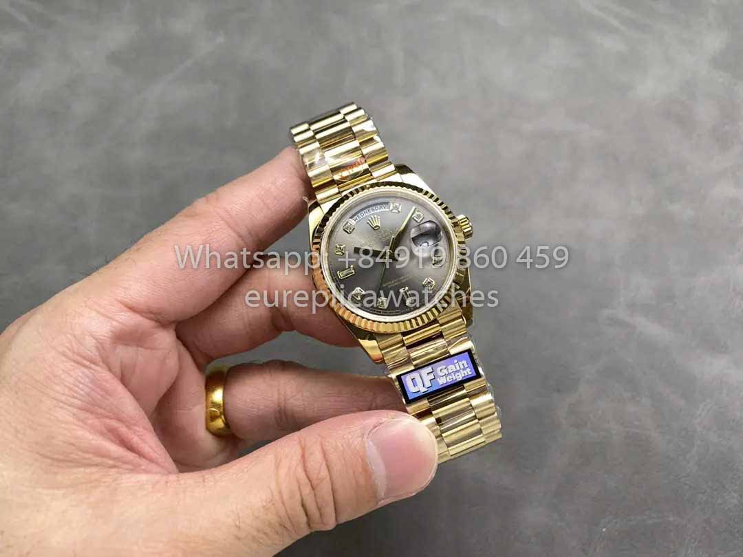 Rolex Day Date M128235 lila Perlmutt QF Factory 1:1 Bester Klon Gelbgold 36