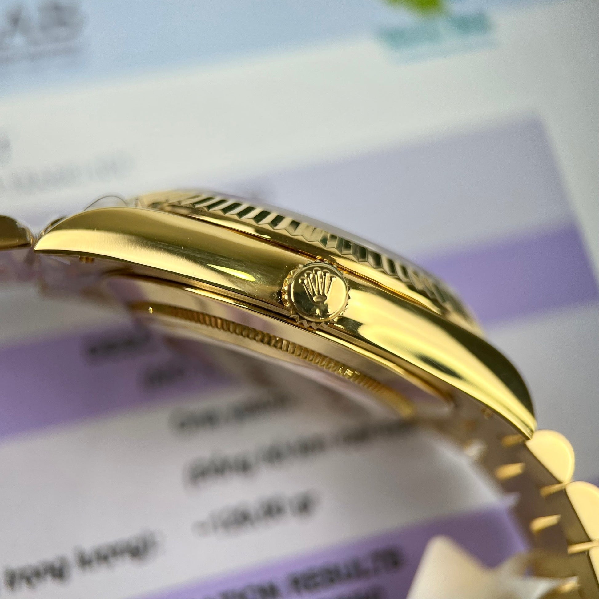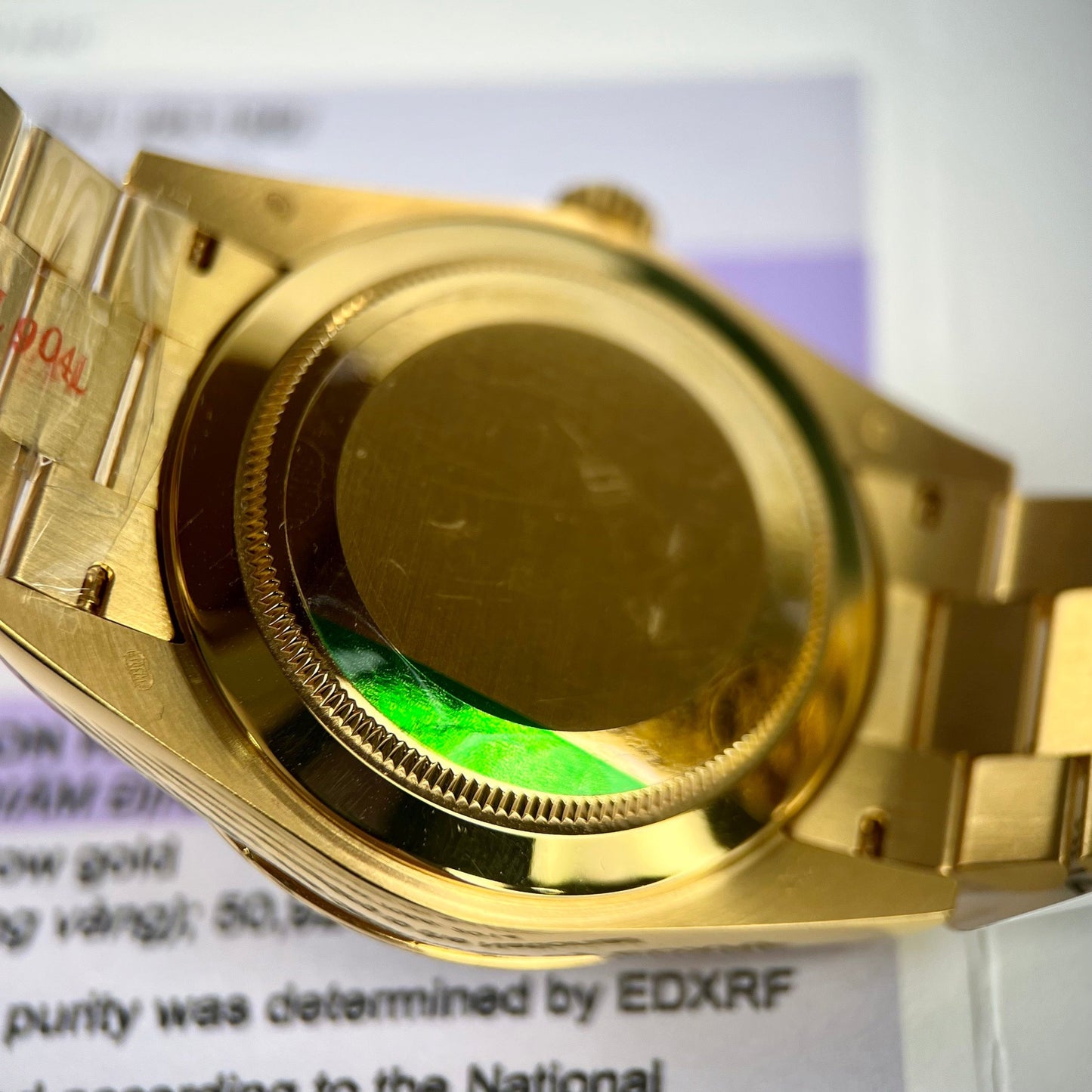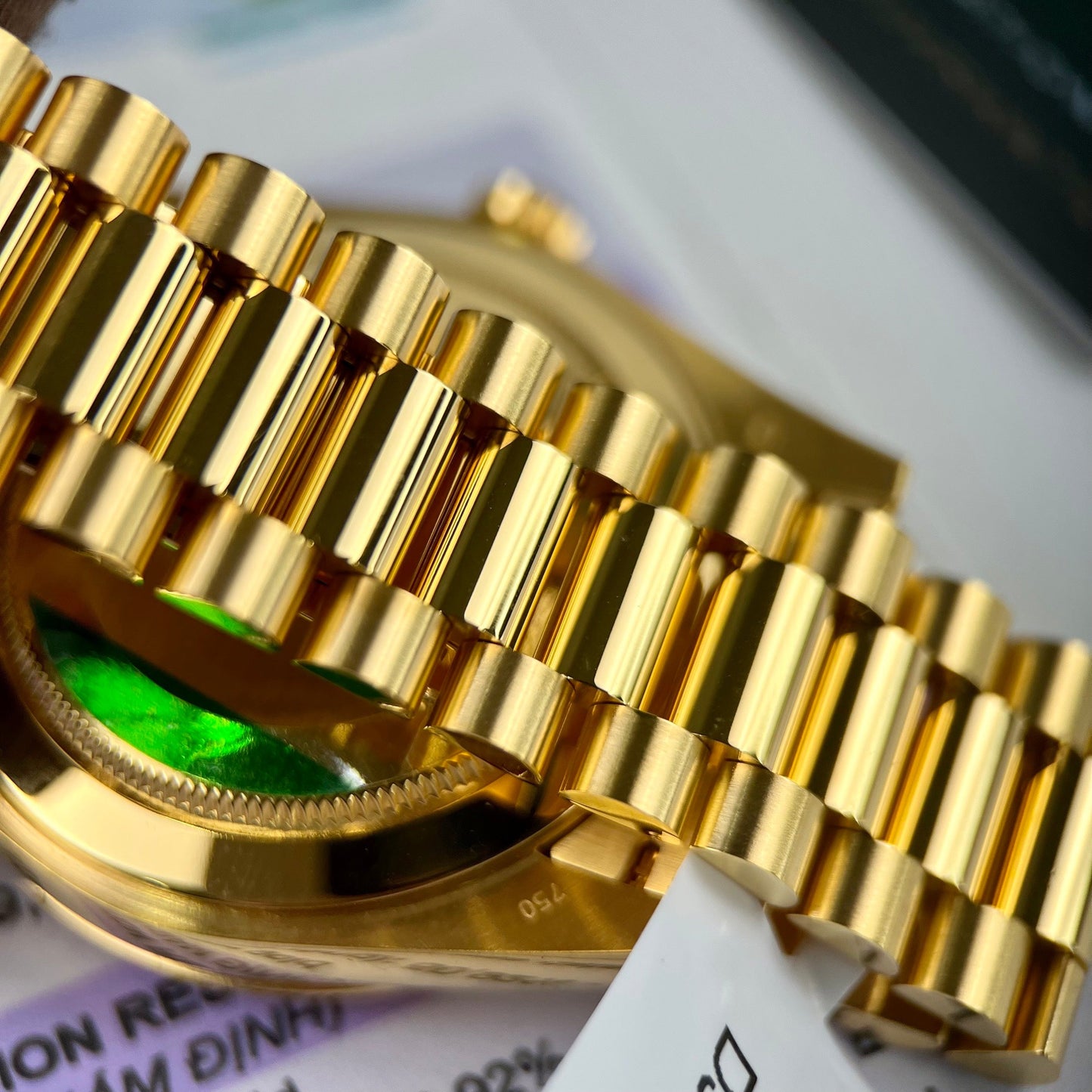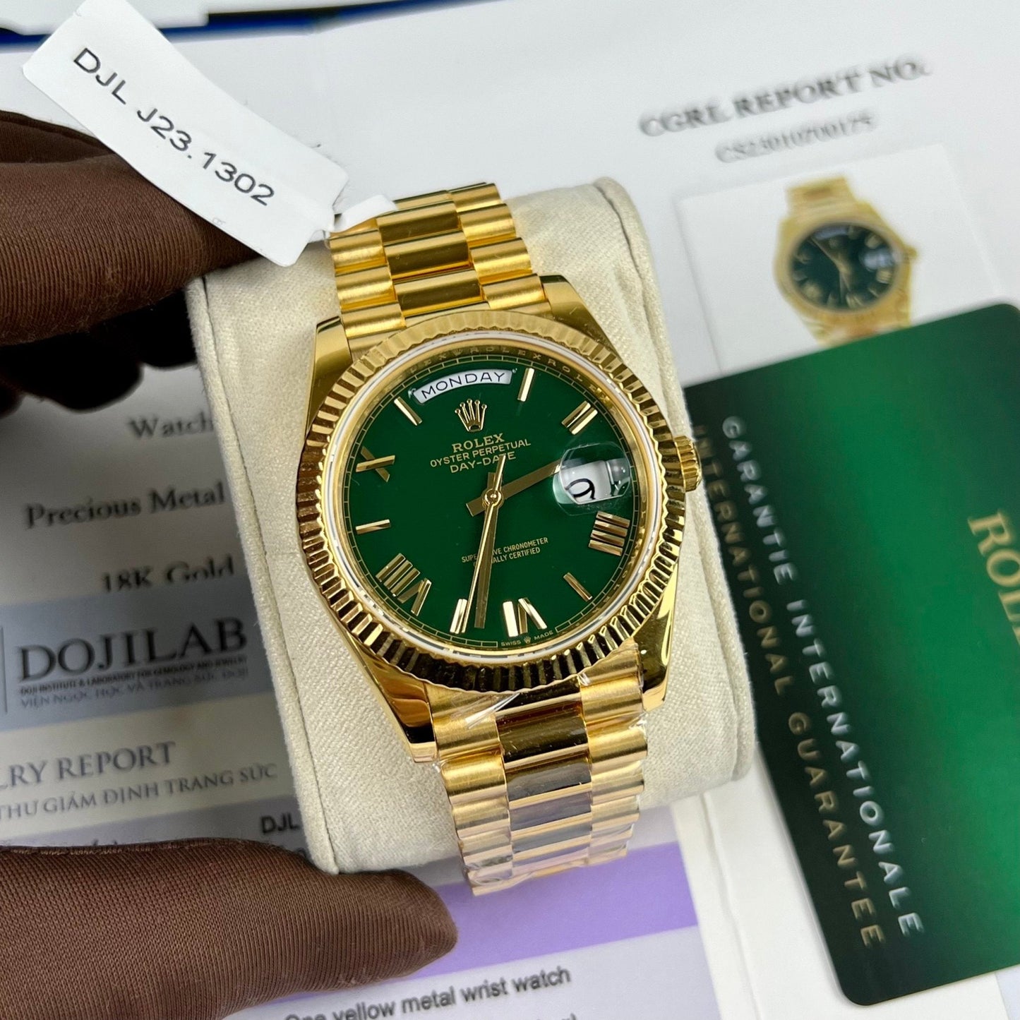 Rolex DayDate 40 mm 228238 beschichtetes 18-karätiges Gelbgold, Präsident, grünes Zifferblatt, 130 Gramm