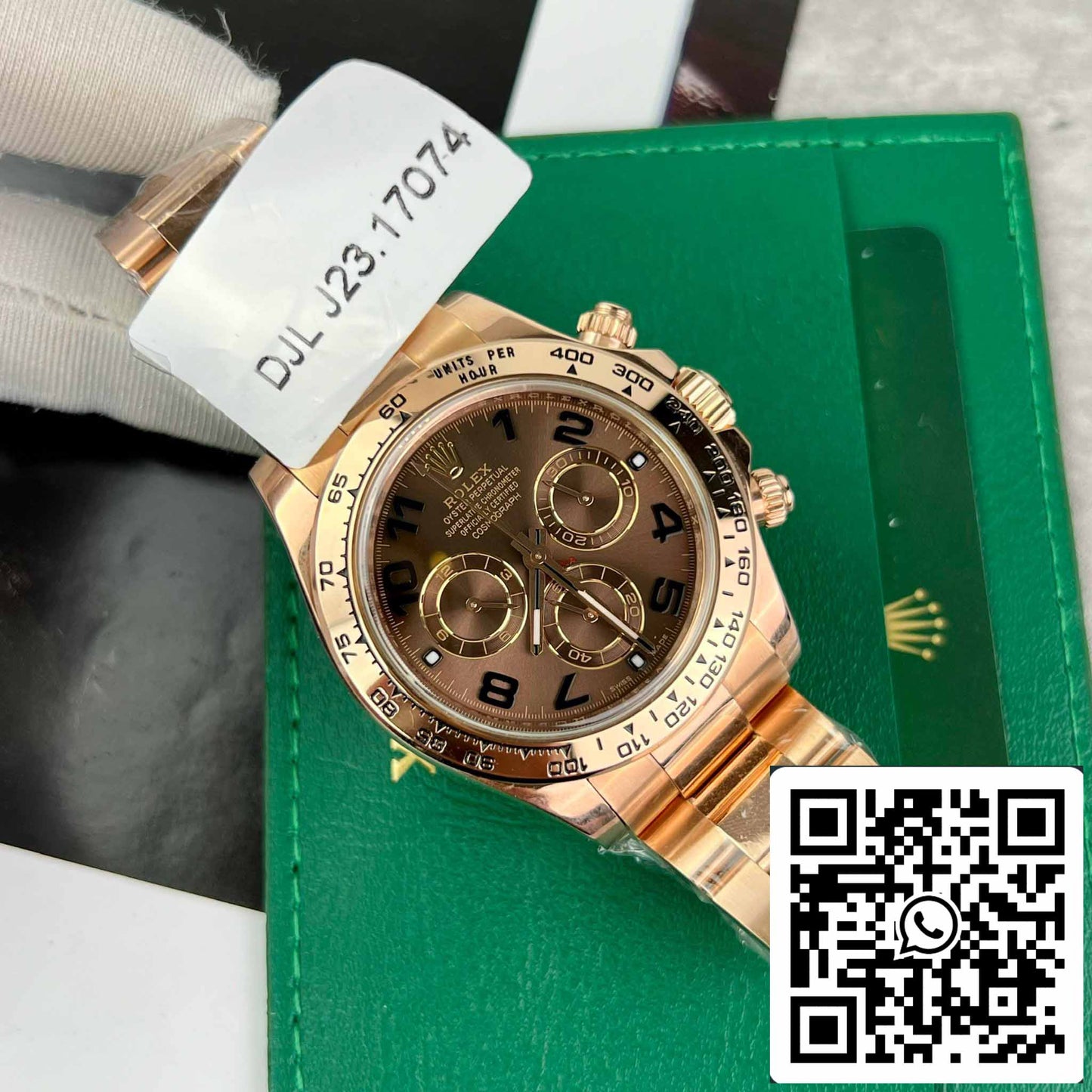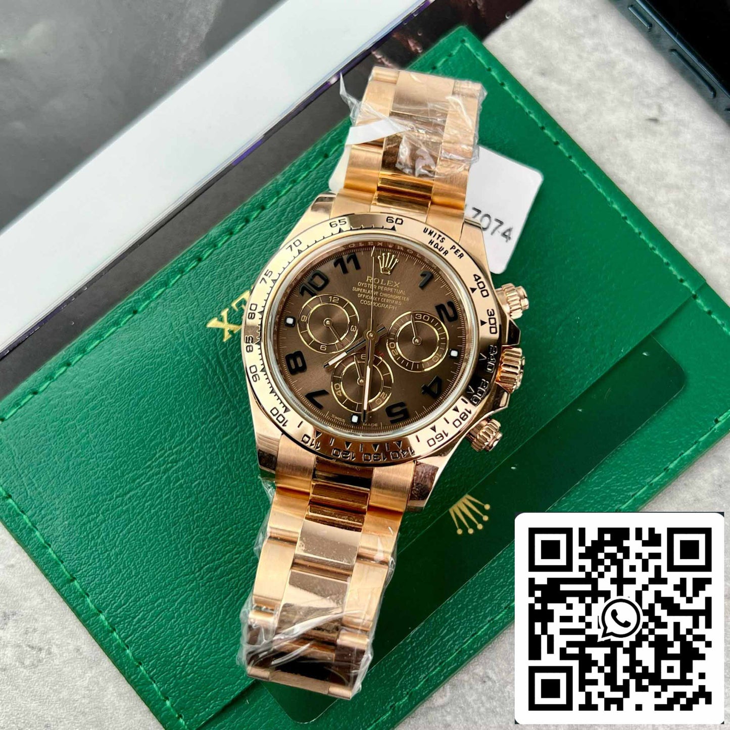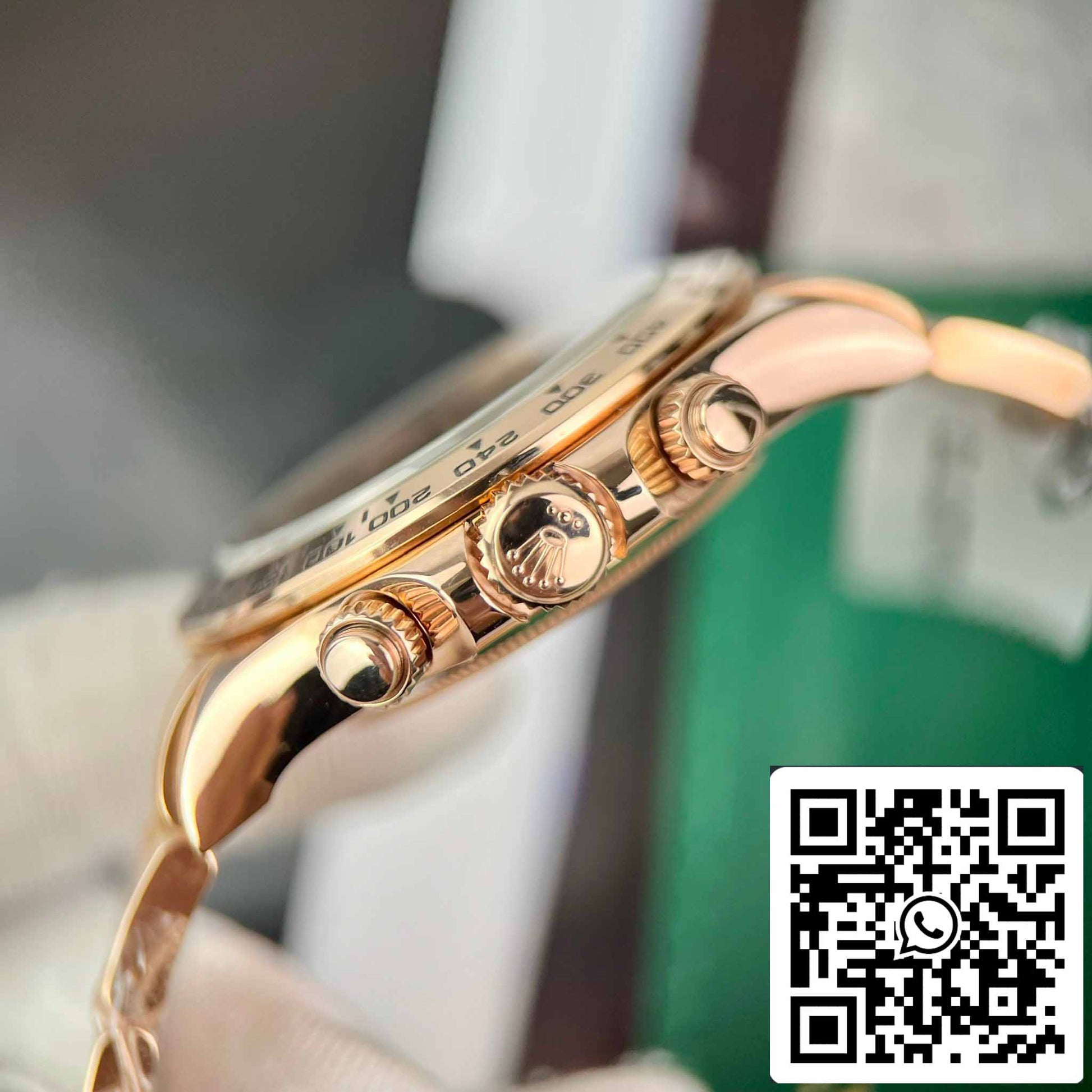 Der Rolex Cosmograph Daytona ist eine mechanische Chronographen-Armbanduhr , die speziell auf die Bedürfnisse von Rennfahrern zugeschnitten ist, indem sie die verstrichene Zeit misst und die Durchschnittsgeschwindigkeit berechnet. Wir bringen die perfekteste Replika-Version aus der großen Werkstatt. Darüber hinaus wurde es mit 18-karätigem Gold beschichtet, was es schöner und perfekter macht.