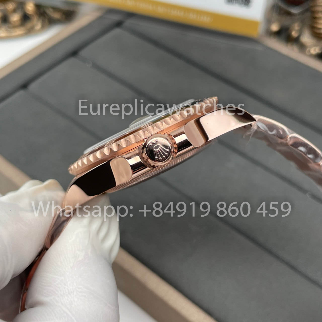 Material: 904L-Stahl, Gehäuse und Band mit 18-Karat-Goldbeschichtung