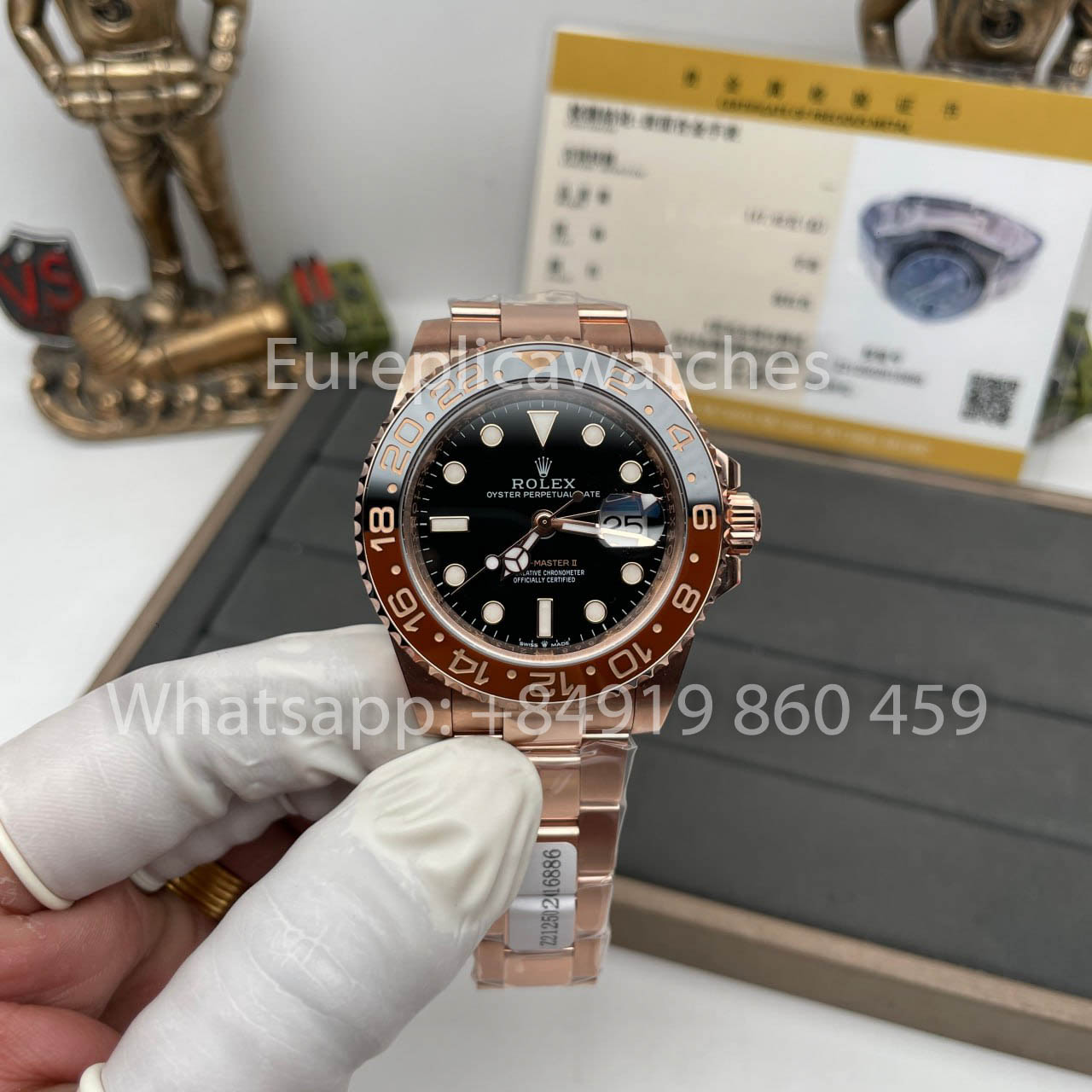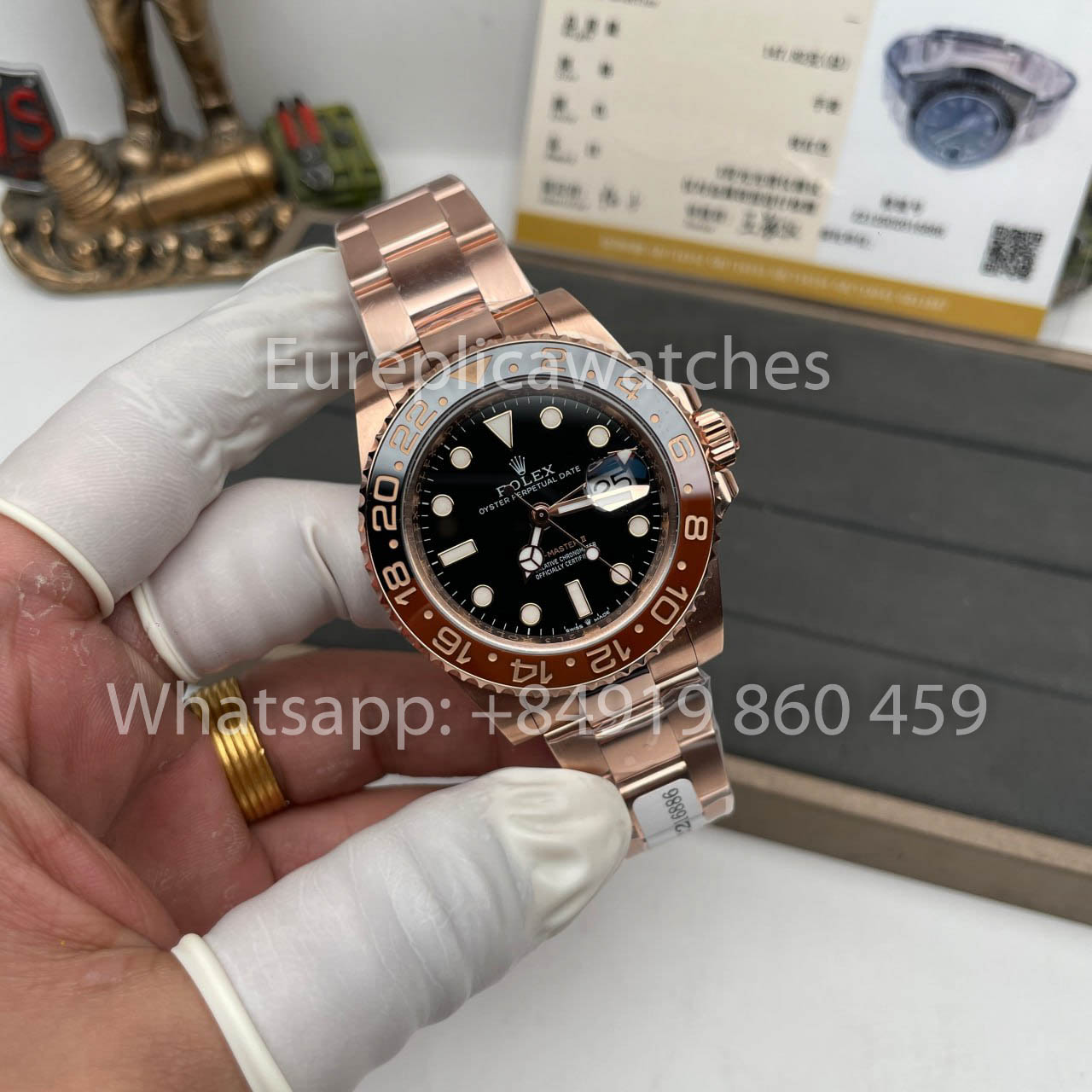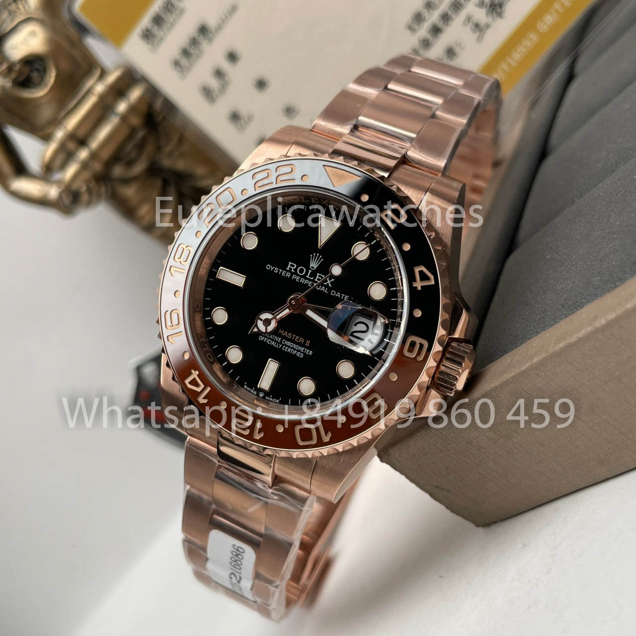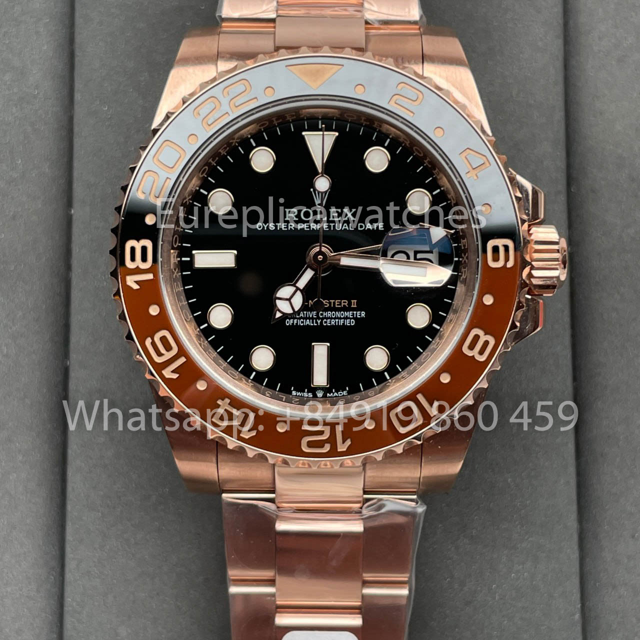 Rolex GMT-Master II Everose Gold Root Beer Brown 126715CHNR 40 mm Roségold verpackt von Clean Factory