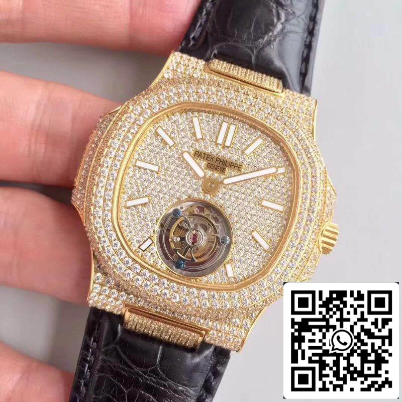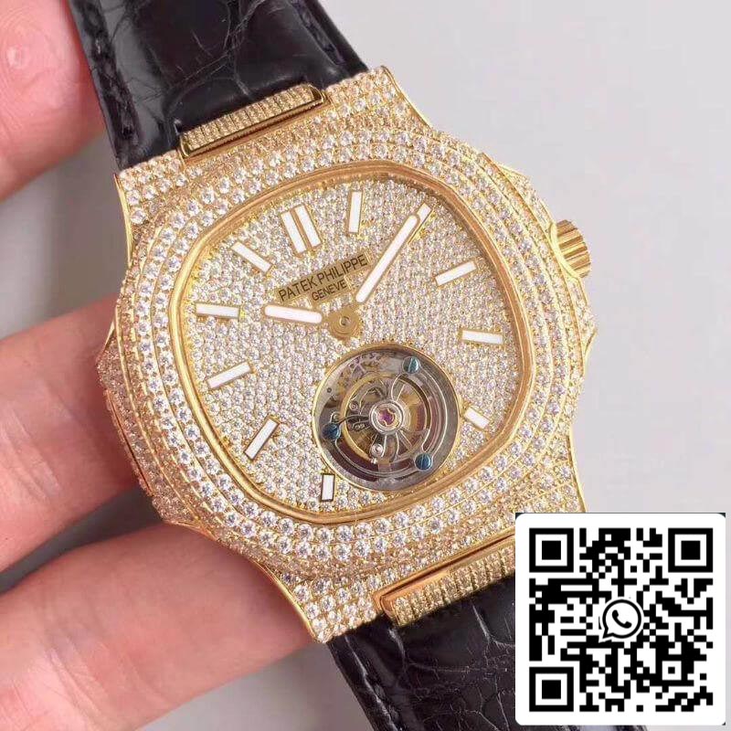 Patek Philippe Nautilus Jumbo Tourbillon 1: 1 Meilleure édition Tourbillon suisse Cadran diamant en or jaune 18 carats