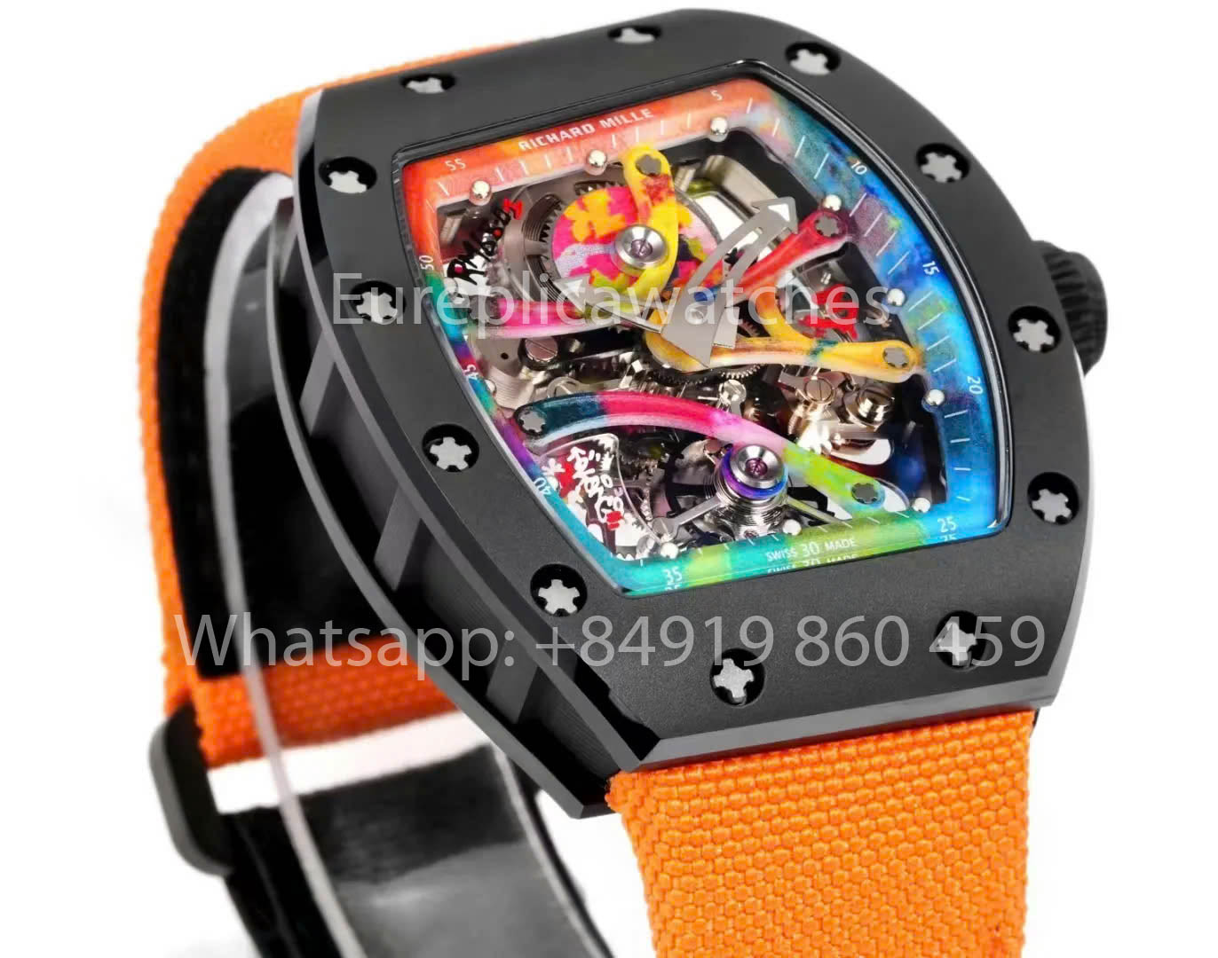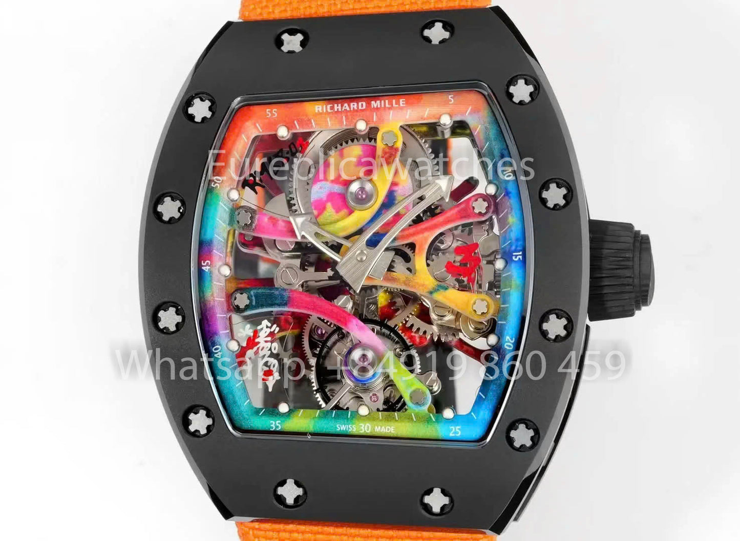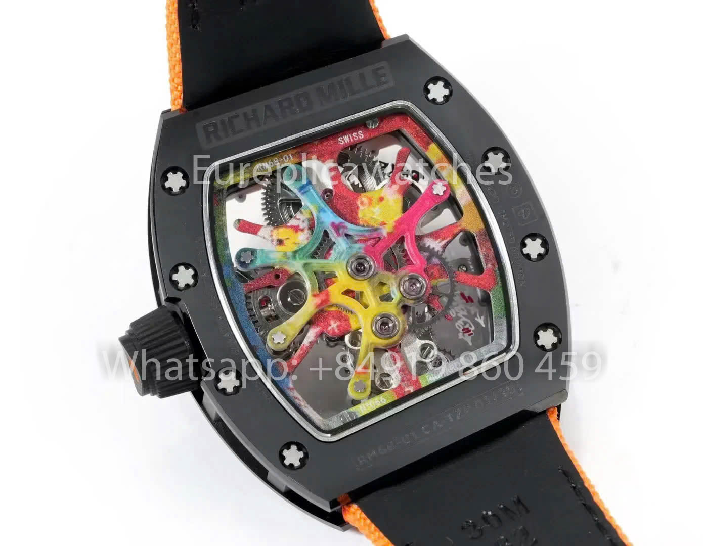 Montre RICHARD MILLE RM 68-01 Tourbillon Cyril Kongo 1:1 Meilleur clone RM Factory Boîtier noir Bracelet velcro orange