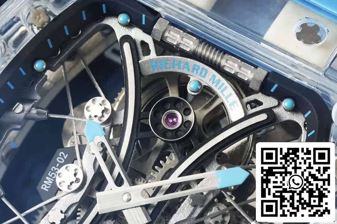 Richard Mille RM053-02 Tourbillon 1:1 Meilleure édition RM Factory Bracelet en caoutchouc bleu